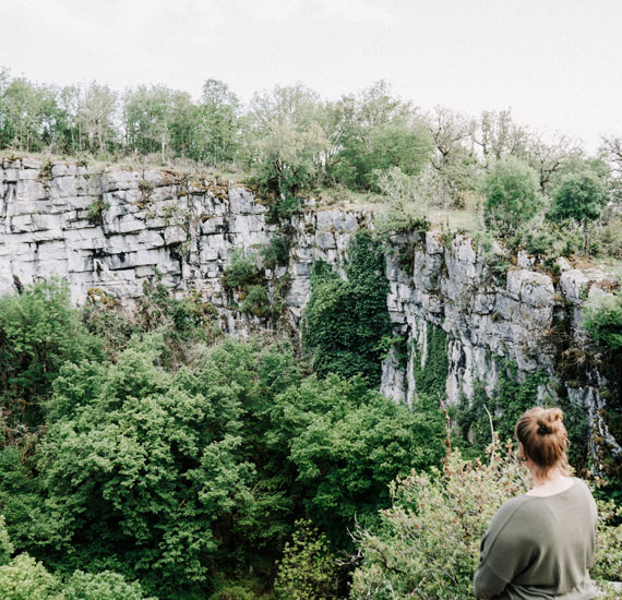 De 5 kilometer lange wandelroute Sentier karstique de l’igue de Crégols brengt je naar een pad met uitzicht op dit brede, diepe gat in de grond. Wandelend door het groen spot je bovendien een igue en een boerderijruïne.