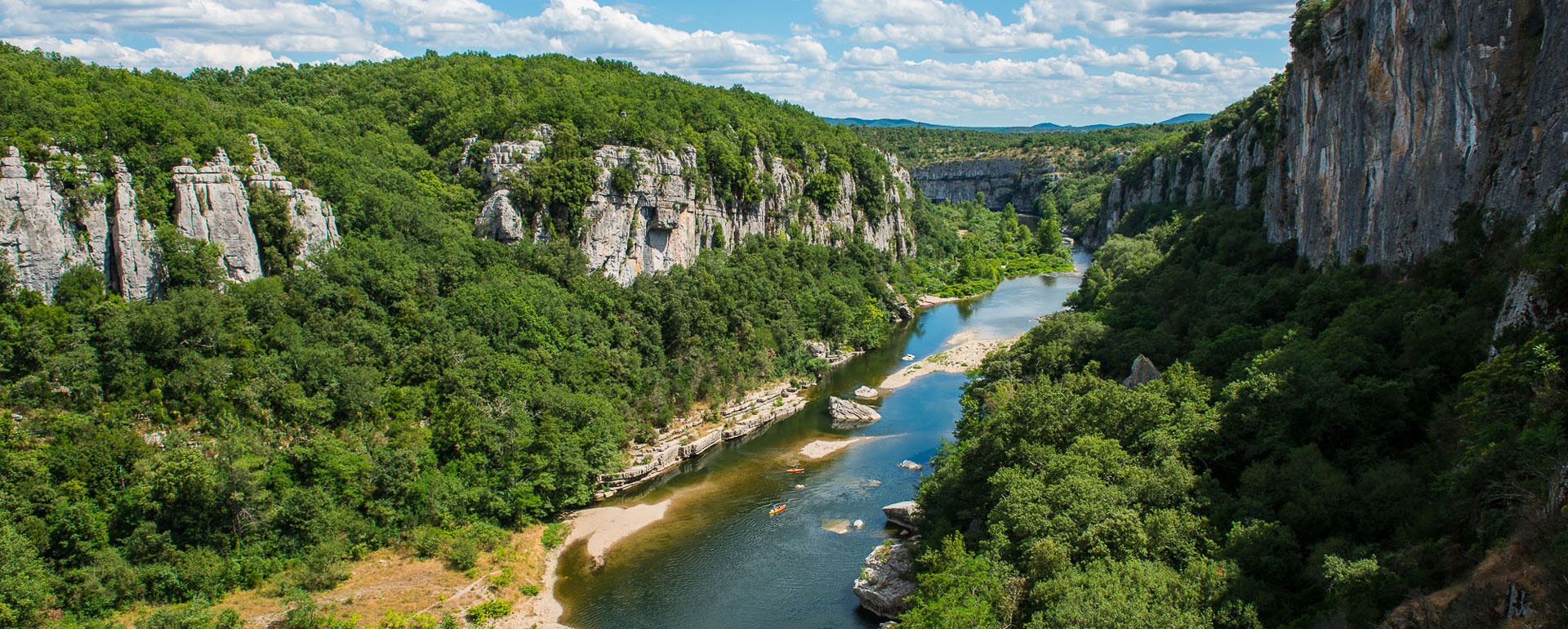 In de Ardèche strekt de kronkelende rivier de Chassezac zich uit over bijna 85 km, tussen canyons en stroomversnellingen, kiezelstranden en kliffen. De rivier slingert zich door graniet in het noorden, omarmt schist en zandsteen in de Cevennen van de Ardèche en snijdt diepe kloven in de kalksteen in het zuiden, waar ze de kleuren van de Middellandse Zee aanneemt. Deze mozaïek van reliëfs en landschappen maakt de Gorges du Chassezac tot een paradijs voor liefhebbers van buitenrecreatie. Kies naar gelang uw interesses: canyoning boven Pied-de-Borne, via corda, suppen en kanoën in het hart van de kloven, of klimmen in het bos van Païolive. En vergeet niet te wandelen, mountainbiken, vissen en zwemmen.