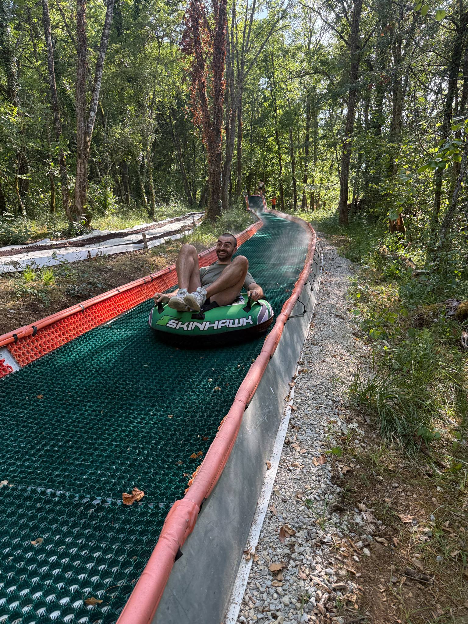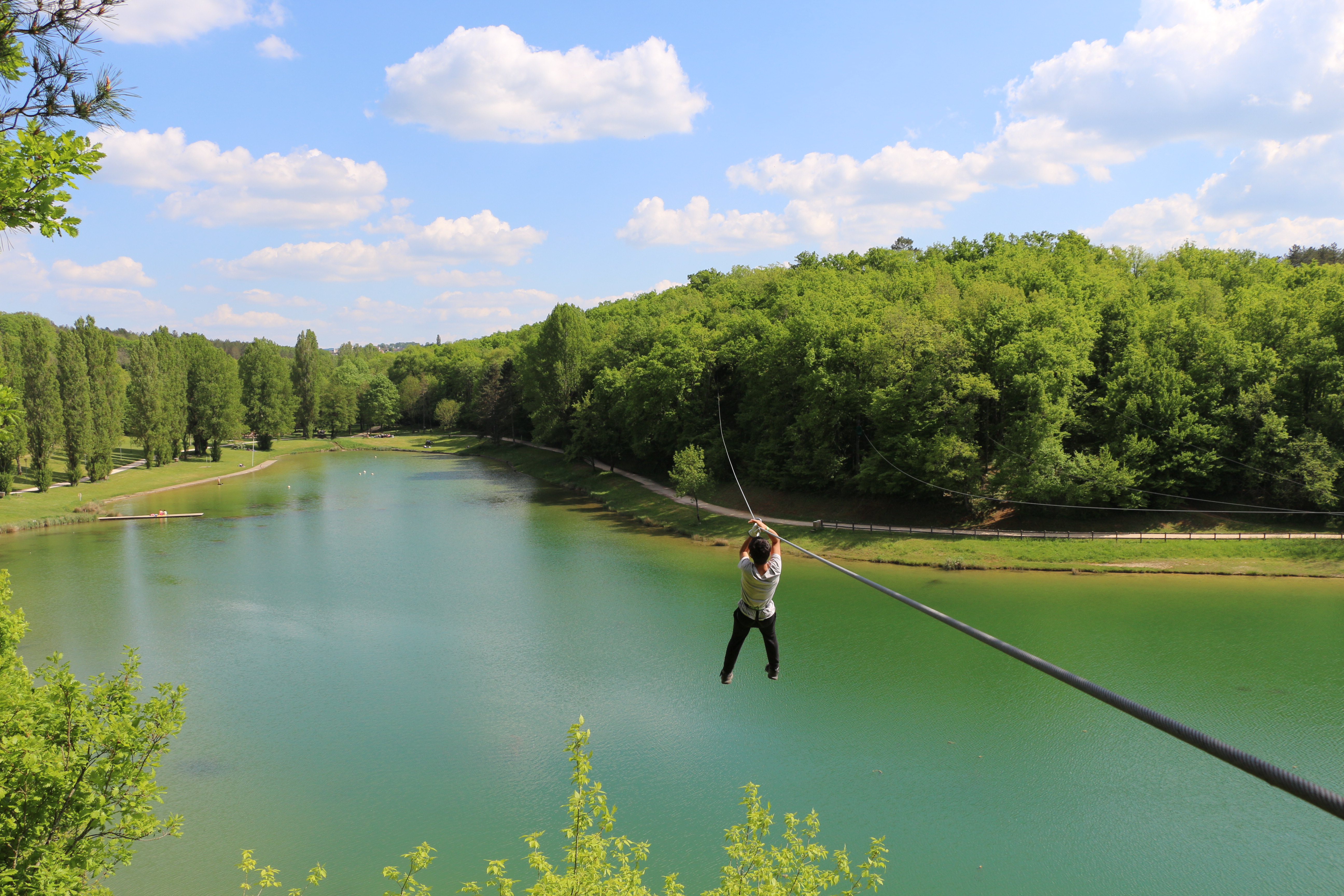 In de koelte van een eikenbos, een avonturenparcours voor alle niveaus uitgerust met een ononderbroken reddingslijn, vanaf 2 jaar. Gigantische tokkelbanen over het meer, meer dan 1000 m.
