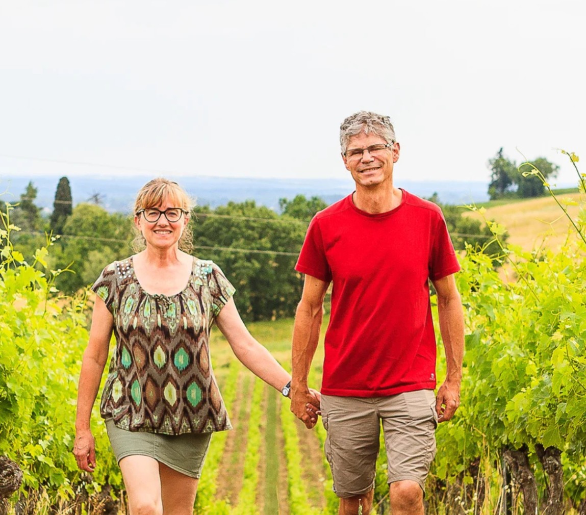 Le Domaine Duffau, c’est l’histoire de Bruno et Anne — deux globe-trotteurs qui ont fini par poser leurs valises ici pour faire du vin autrement. Pas de sulfites, des traitements aux plantes, 11 cuvées dont des bulles rouges, une rareté dans le vignoble gaillacois. Chaque mardi du 8 juillet au 25 août, une balade à vélo électrique vous conduit jusqu’à eux.