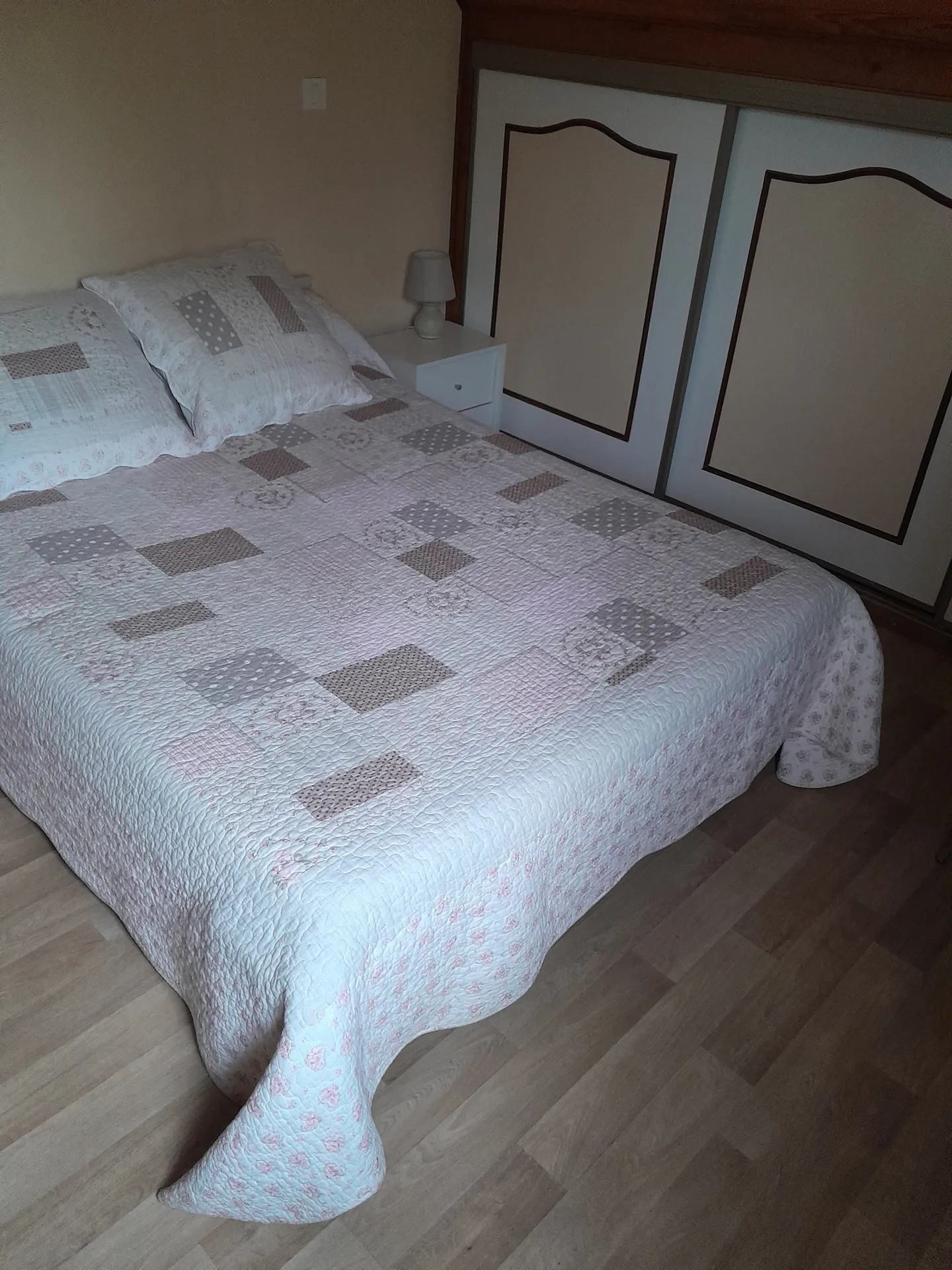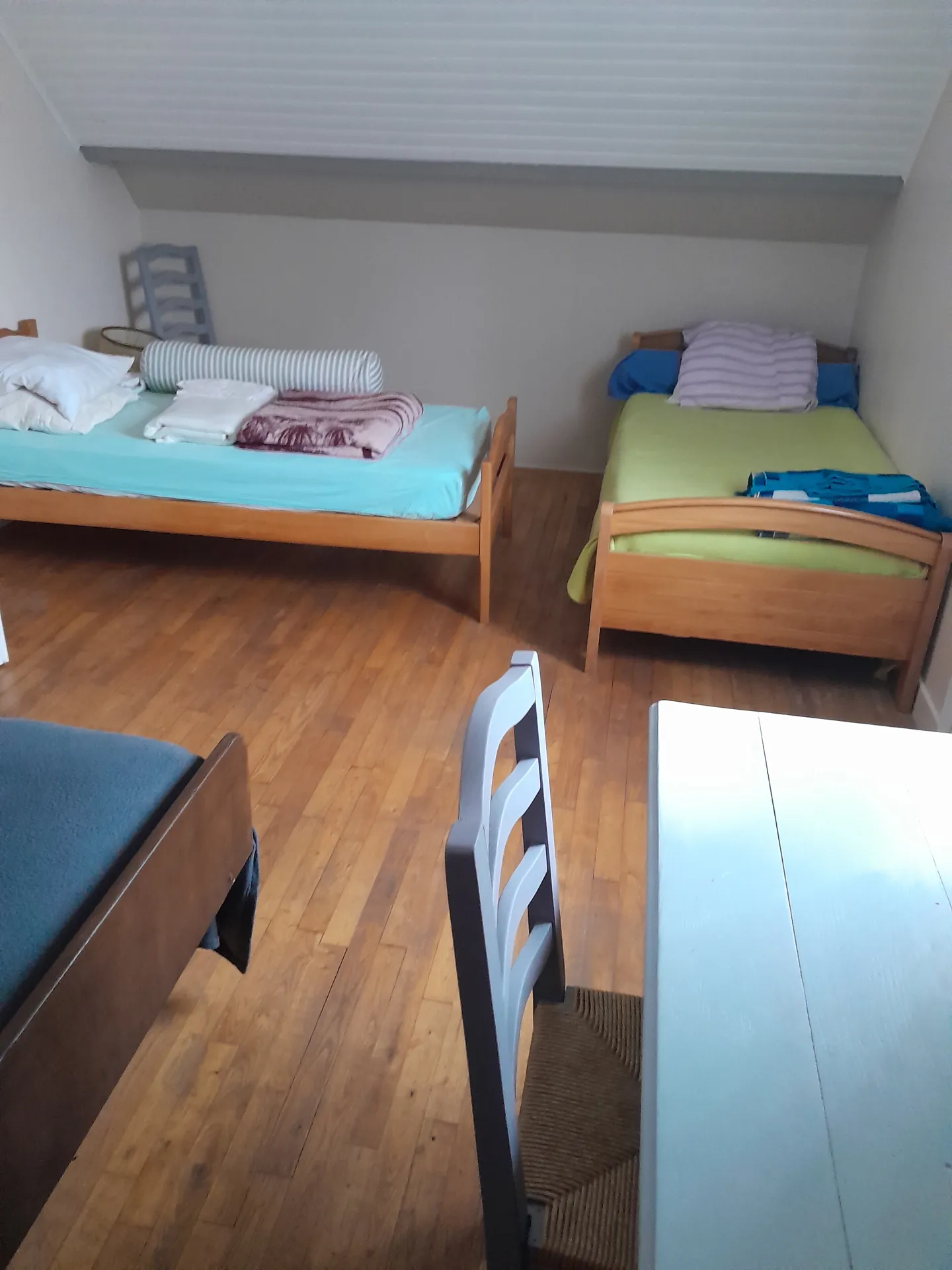 Deux grandes chambres : une avec un lit en 140 et un lit en 130, l’autre avec 4 lits en 90. Sanitaires indépendants. La maison est située dans un village calme, au bord du GR 465. Tous commerces à 3 km. Ouvert toute l’année. Possibilité d’utiliser la cuisine familiale, un frigo et un micro-ondes sont à la disposition des locataires.