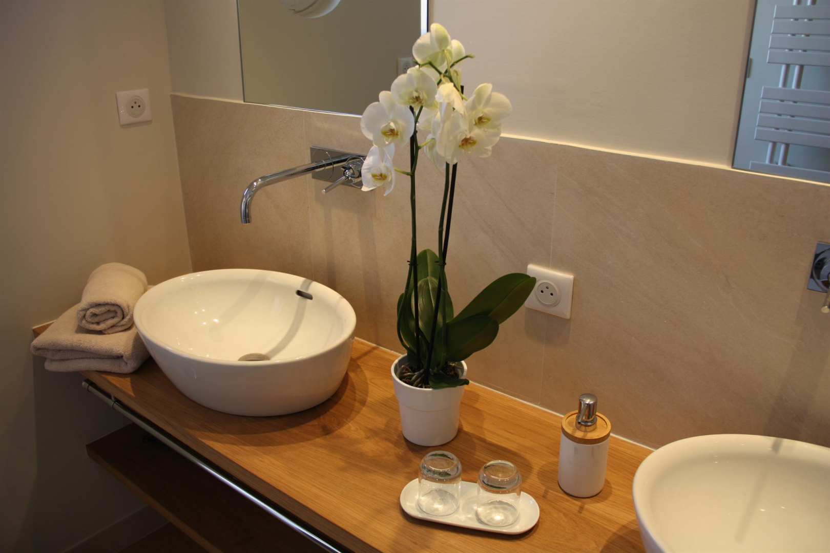 The suite consists of two bright rooms and a large bathroom. The first bedroom measures 25 m², bed 160X200. The second bedroom measures 18 m², two single beds 90X190. The bathroom has a real walk-in shower, double sink, separate toilet. Charming souleilhou overlooking the street from where we see the cathedral.