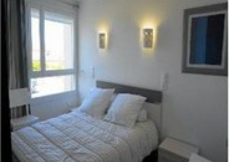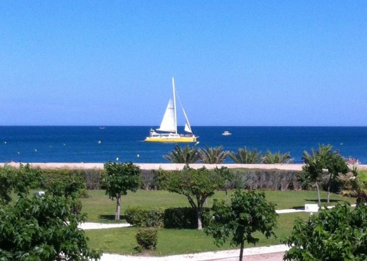 Private individual renting furnished in Port Barcarès T2 luxury crossing facing the sea in secure residence, 1st floor with lift, large wooded park, parking space secured by barrier, bike room, sandy beach 50 m, direct access. Boules pitch. Views of the sea, lake and Mont Canigou. 1 bedroom with double bed (140×190), large wardrobe with mirror. Living room with 2-seater sofa bed, 1 single sofa bed. Garden furniture. Fitted kitchen with microwave, induction hob, oven, dishwasher, fridge-freezer, washing machine, television with USB stick, DVD player and recorder, coffee maker, steam cooker. Bathroom with shower door. Separate WC. WIFI CONNECTION. Nearby shops and restaurants.
