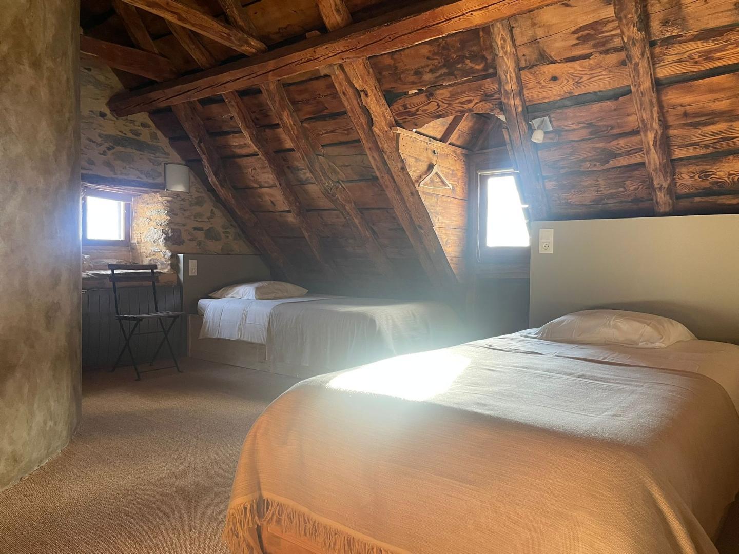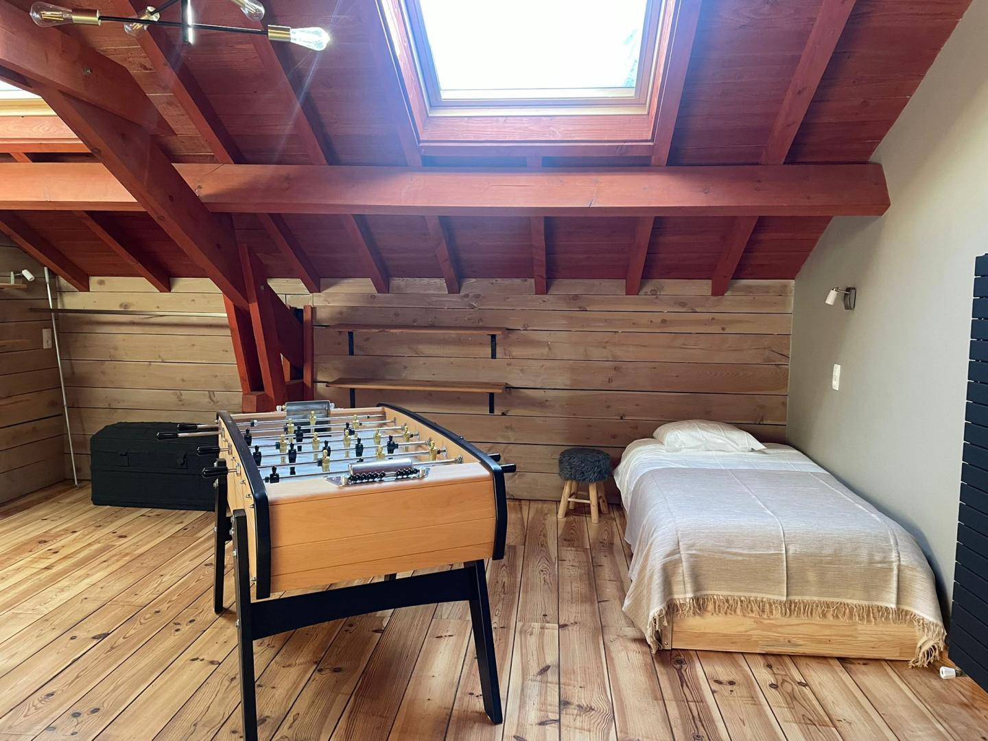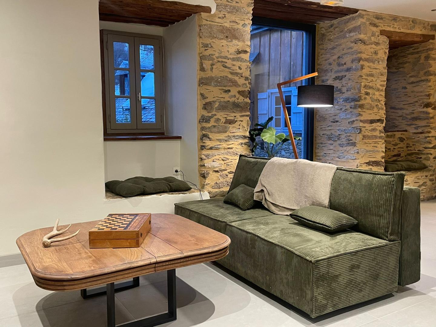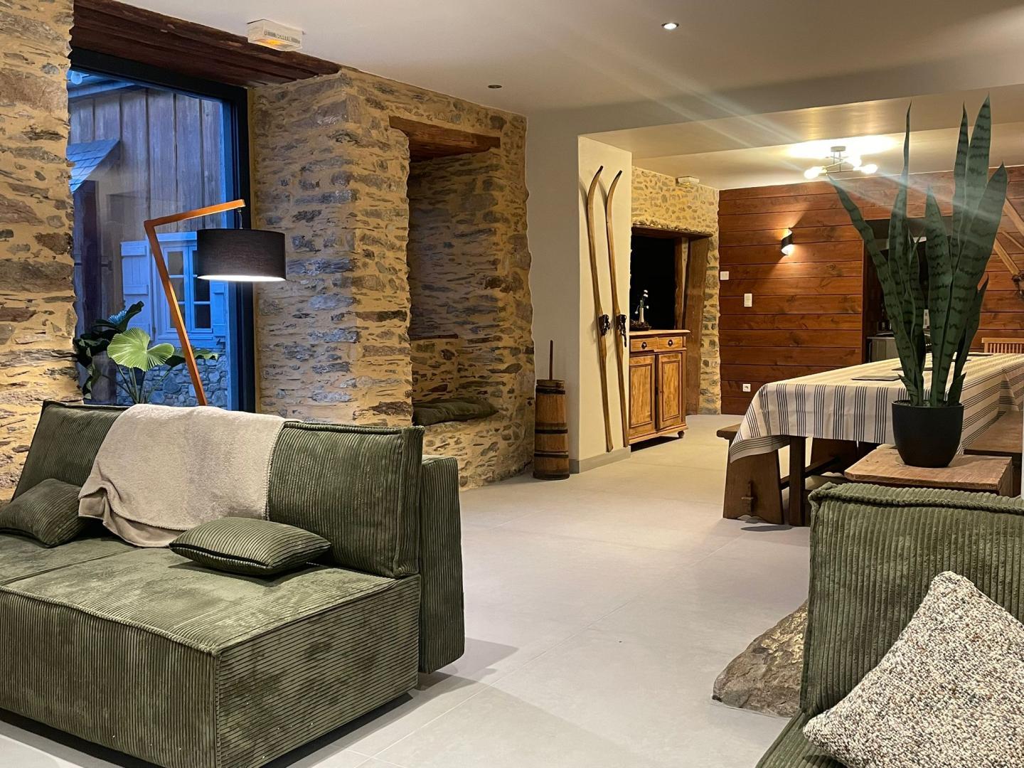 Renovatie met gebruik van edele materialen zoals fresco en kalk. Prachtig, groot, charmant vakantiehuis (aan één kant geschakeld), in het dorp Jurvielle, op 9 km van het winter- en zomerresort Peyragudes (skiën en fietsen) en op 11 km van Bagnères-de-Luchon (skiën, fietsen, thermale baden, winkels, restaurants, fietsverhuur, bioscoop, wandelmeer, golf, klimmen). Onze toeristische tips in de buurt: op 15 km afstand: lac d’Oô, de thermen van Balnéa-Loudenvielle, het beroemde restaurant El Almacen in Cirés en het vrijetijdscentrum van Antignac (raften, kanoën, paintball en vissen); Bossost in Spanje ligt op 30 km, net als de accrobranches en het klimpark in Pyrénées-Hô; Saint-Bertrand-de-Comminges (mooiste dorp van Frankrijk) en Montréjeau (treinstation en zwemmeer) liggen op minder dan 1 uur rijden. Gîte met 6 slaapkamers – 12 bedden – 6 privé badkamers. Omheinde privétuin. Openbare parkeerplaats op 100 meter. – Begane grond: entree, slaapkamer toegankelijk voor mindervaliden (tweepersoonsbed 160*200cm, douche, wastafel en WC), aparte WC met wastafel, bijkeuken, semi-professionele keuken, eethoek en zithoek. – Eerste verdieping aan de ingangszijde: een kleine slaapzaal met 4 eenpersoonsbedden (90 cm) en badkamer met douche; een tweepersoonskamer met een bed van 160 cm en badkamer. Zitgedeelte op de eerste verdieping: twee tweepersoonskamers met bedden van 140 en aangrenzende doucheruimtes. – Tweede verdieping: kleine slaapzaal met 4 eenpersoonsbedden (90 cm) en badkamer met douche. Vloerverwarming op stookolie. Traduction automatique par DeepL via DATAtourisme
