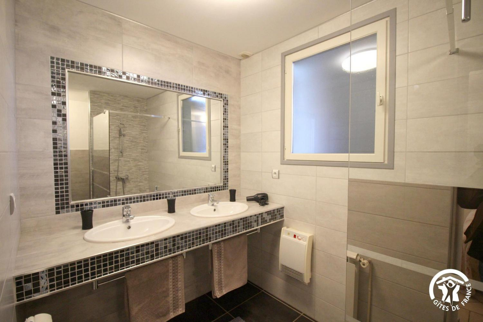 Chambre “Beige” : 1 lit en 160, 1 convertible en 140, salle d’eau et WC séparés.