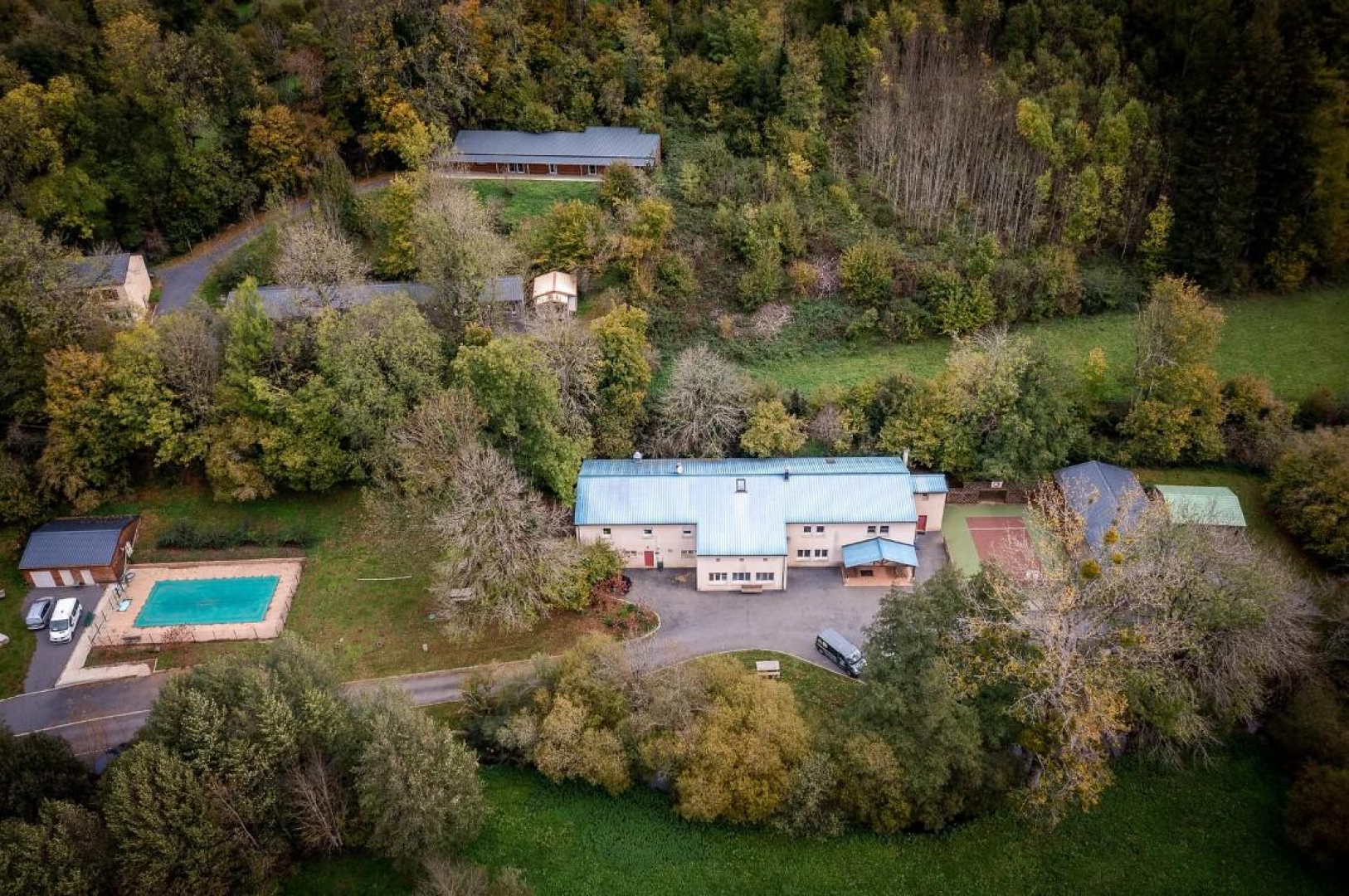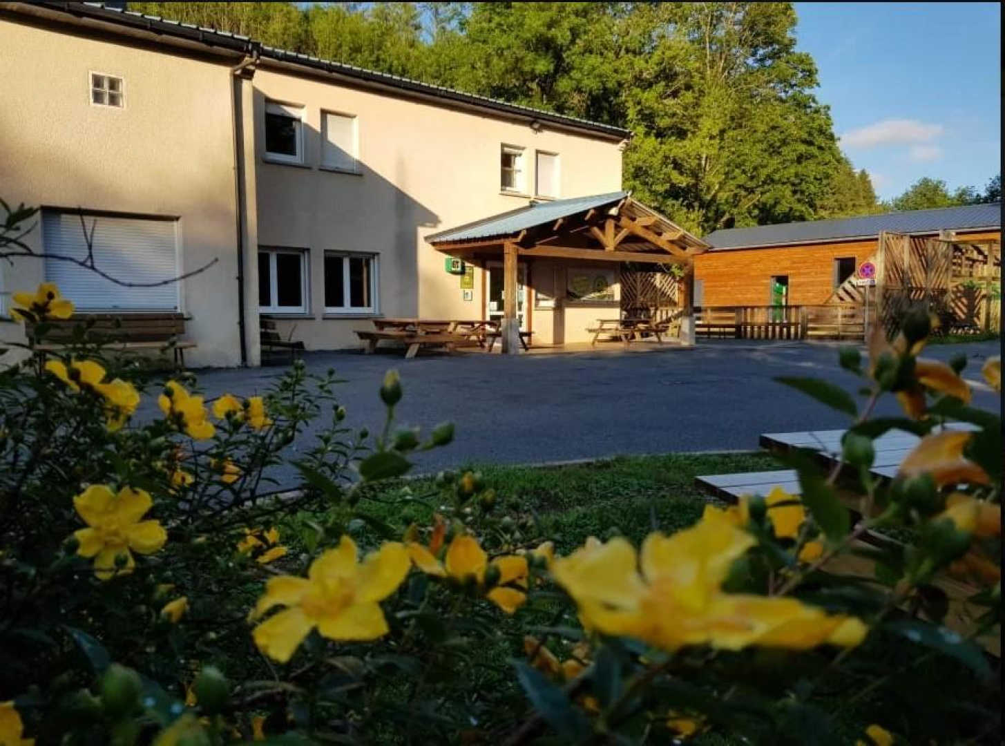 Gîte for groups, fully into the Tarnais mountain, composed of three main buildings and 3 small chalets, to reach a maximum capacity of 106 places, all in bunk bds, in rooms of 4,6 or 8 persons. Collective washing facilities and private ones in the bdrms. Main building 44 places, with activities/class rooms, dining-rm, lounge, professional kitchen, 10 bdrms. Lower building 32 places, 8 bdrms. Higher building 22 places, 3 bdrms. Swimming-pool, games’ grounds, synthetic multi-sports grounds, brook. All types of stays and all configurations possible, from 2 to 100 persons for sports or cultural associations, discovery classes, family get-togethers, children’s stays, anniversaries, etc.. In the heart of the Lacaune Mountains, 600 m high, you will be surrounded by woods, meadows and brooks (the Berlou flows at the very feet of the gîte). In Berlats, you’ll enjoy angling, hiking on foot, on mountain bike, getting invigorated in a 100% natural setting, far from town, at the outskirts of the large forests of the Parc Naturel Régional du Haut Languedoc. In Berlats, we are 20 km away from the Sidobre, a wild mountain forest harbouring sensational geologic curiosities : the Goose Rock, the Three Cheese Rock, the Chaos of La Balme and of La Resse, the Trout’s Jump, and multiple secretive treasures and legends of rocks screened off by foliage. In Berlats, we are at a few kms from the superb, large lakes, more or less wild according to your fancies : lakes of Le Laouzas, La Raviège, Le Merle. In Berlats, we are a few minutes away from Lacaune, capital of the Tarnaise pork delicatessen, renowned for its Hot Springs Spa and its Casino.