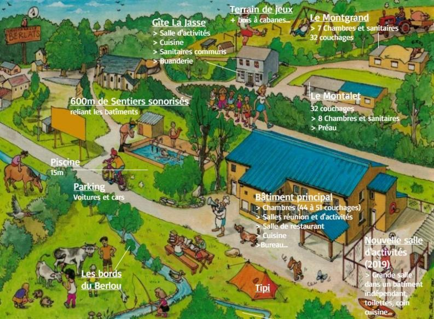 Centre de vacances et d’accueil ou gîte de groupes pour particuliers, Berlats Accueil Découverte peut atteindre une capacité maximale de 116 places