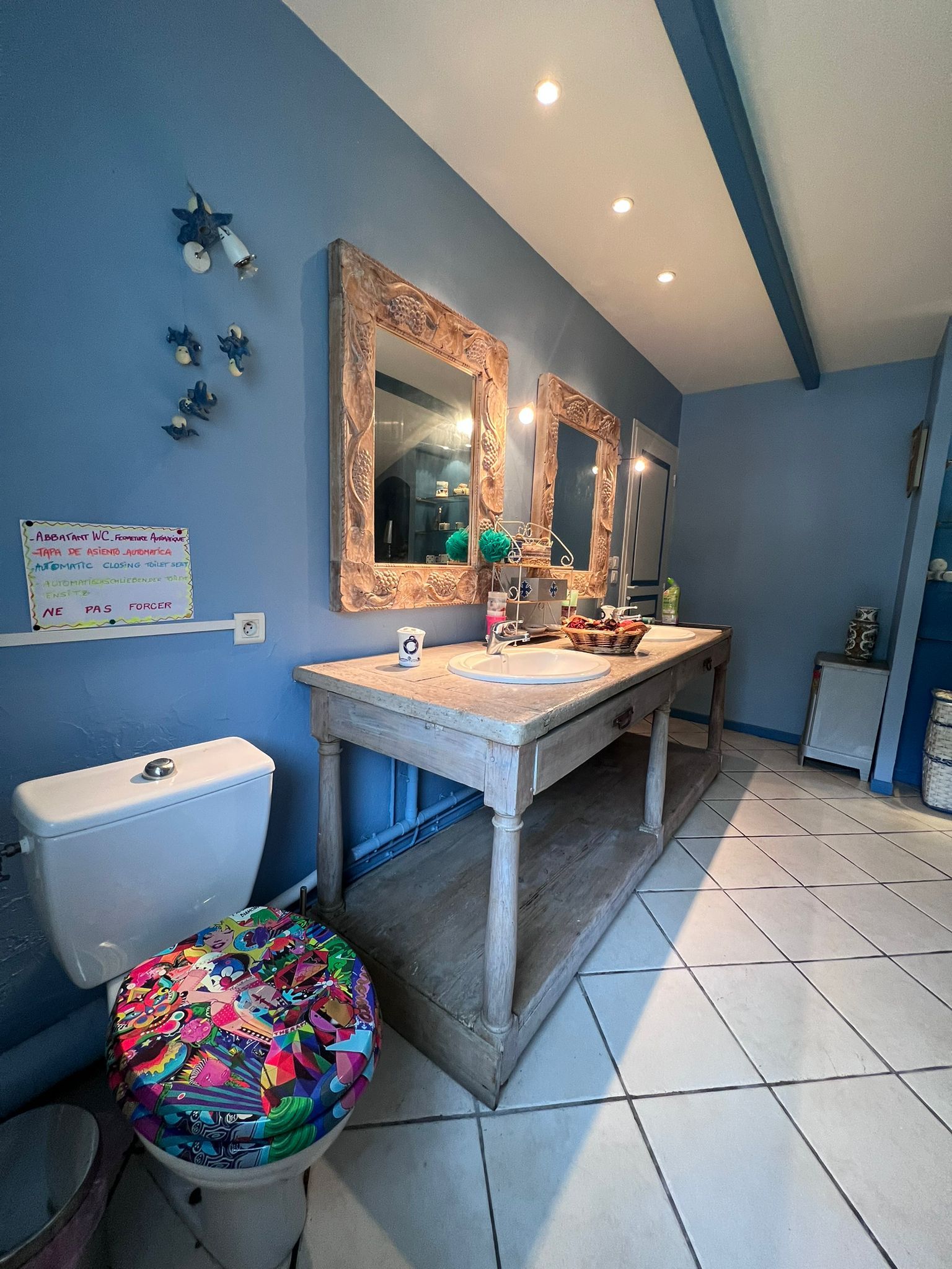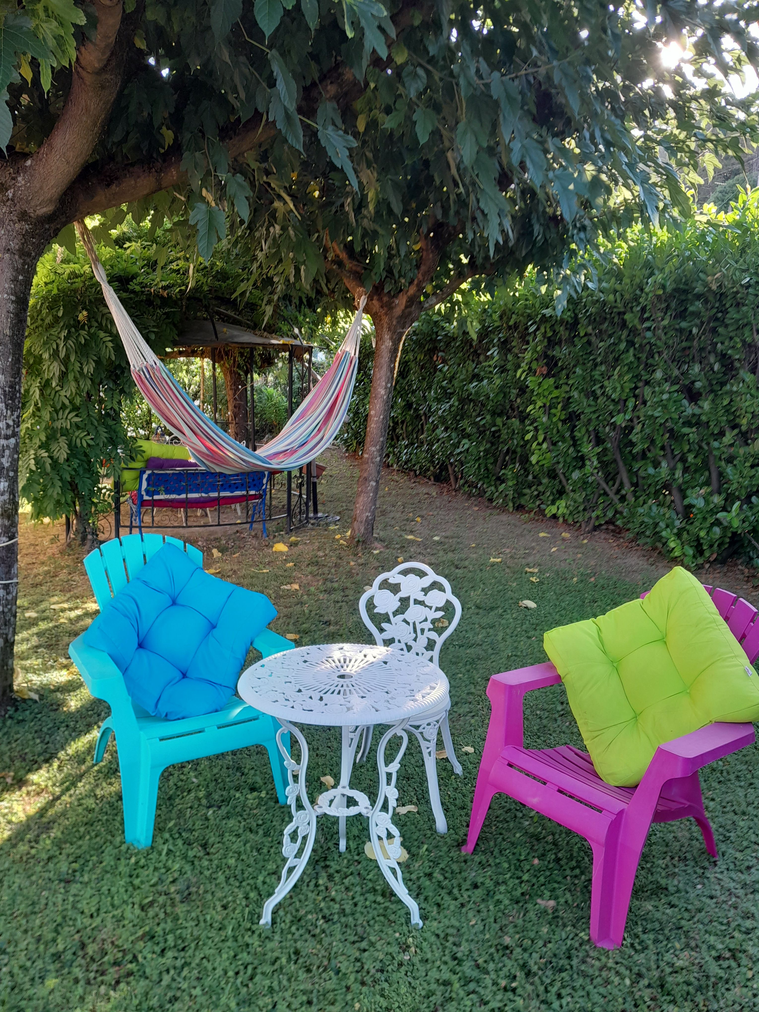 Bathroom shared by the first 3 rooms. Dining room. Equipped garden. Parking for cars and bicycles.