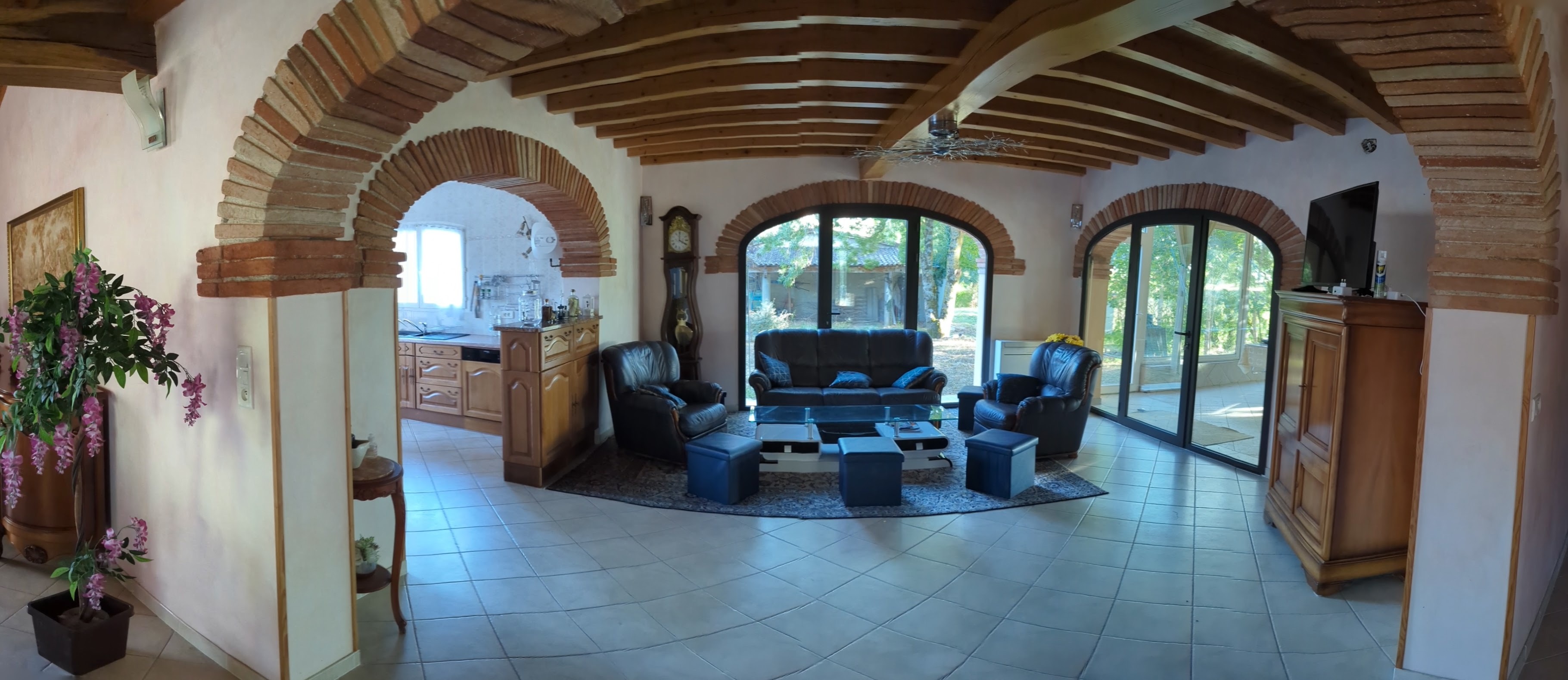 – a kitchen opening onto a large living room.