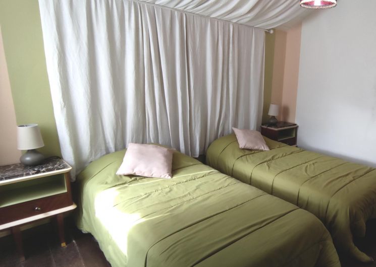 Pièce à vivre avec cuisine ouverte toute équipée, salon, une chambre avec 1 lit 160×190, une chambre avec 2 lits en 90×190, salle d’eau, wc.