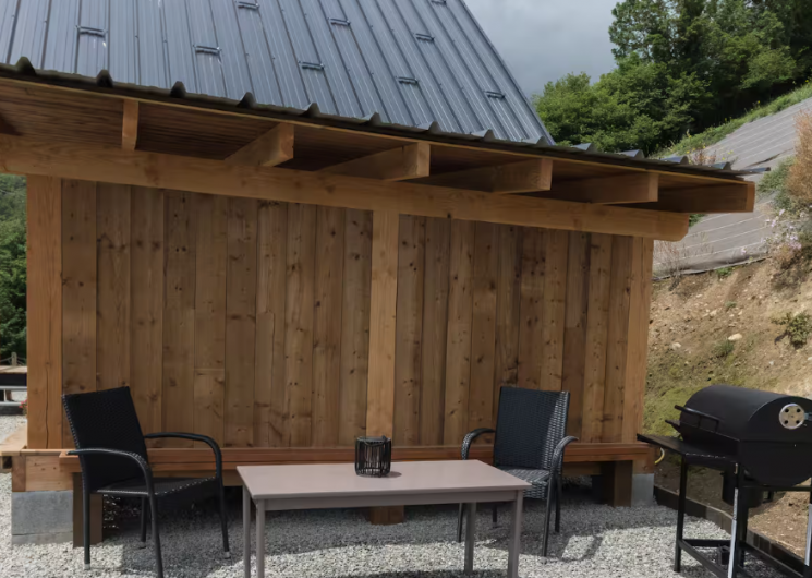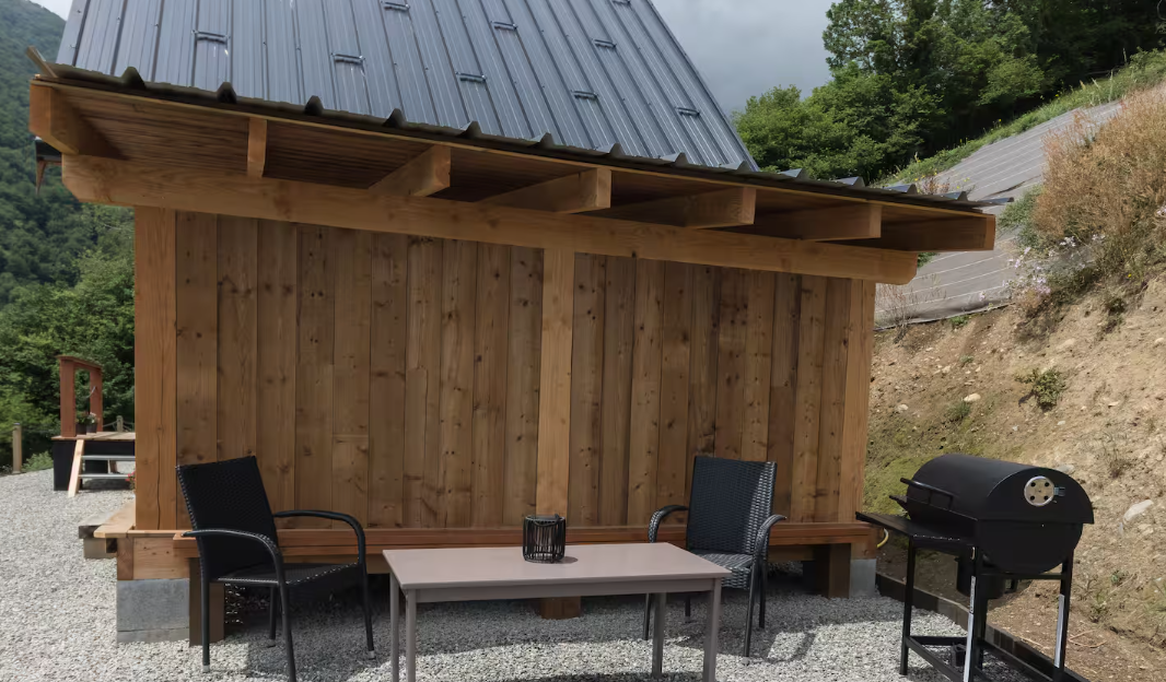 Houten chalet op palen met Scandinavisch bad en een adembenemend uitzicht op het Maladeta-massief, Superbagnères en de 3000 toppen boven Luchon Traduction automatique par DeepL via DATAtourisme