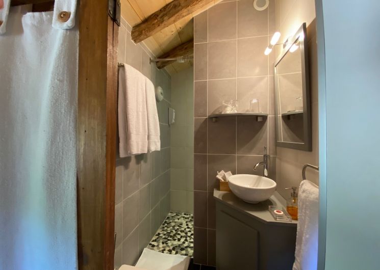 Ontdekken. In het huis van de eigenaren bevindt de lucht -geconditioneerde kamer zich op de 1e verdieping (2 bedden 90) met doucheruimte (bassin, walk -in douche, wc). Terras met bank en uitzicht op het park.