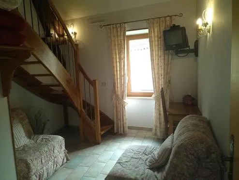 Dans un petit village de la vallée du Tarn, en pleine nature, 2 chambres en duplex de 2/4 personnes (1 lit 140 en mezzanine), salles d’eau et wc privés, un coin-salon avec deux fauteuils convertibles en lit 80, télévision.