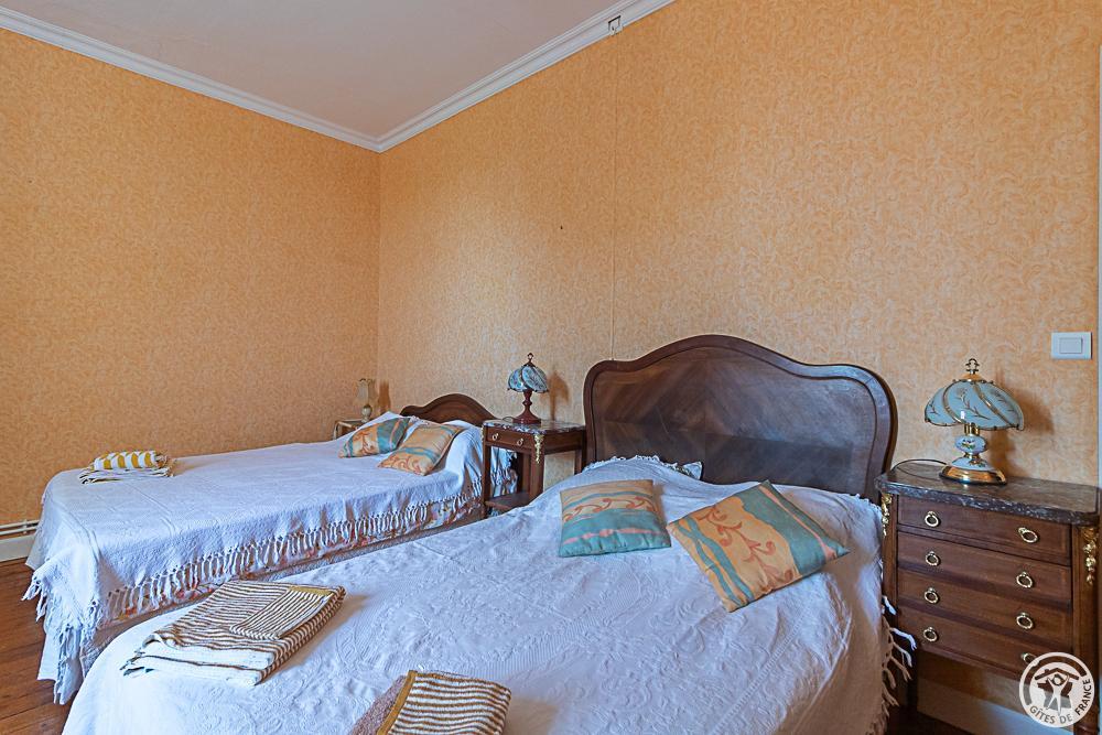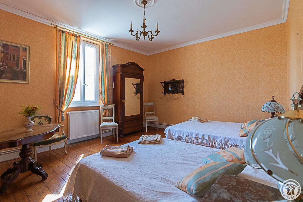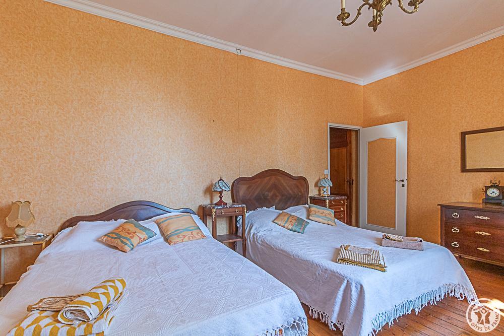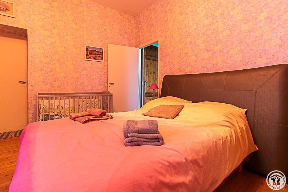 Chambre 6 personnes familiale composée de 3 chambres : une première avec 1 lit en 140*190cm, 1 lit en 90*190cm et 1 lit bébé, une deuxième avec 2 lits en 90*190cm et une troisième avec 1 lit en 120*190cm. Salle d’eau/WC (la même pour les 6 personnes) dans un petit couloir fermé à clé. Bien entendu, si vous louez cette chambre familiale pour 1, 2 ou 3 personnes, les 2 autres seront vides.