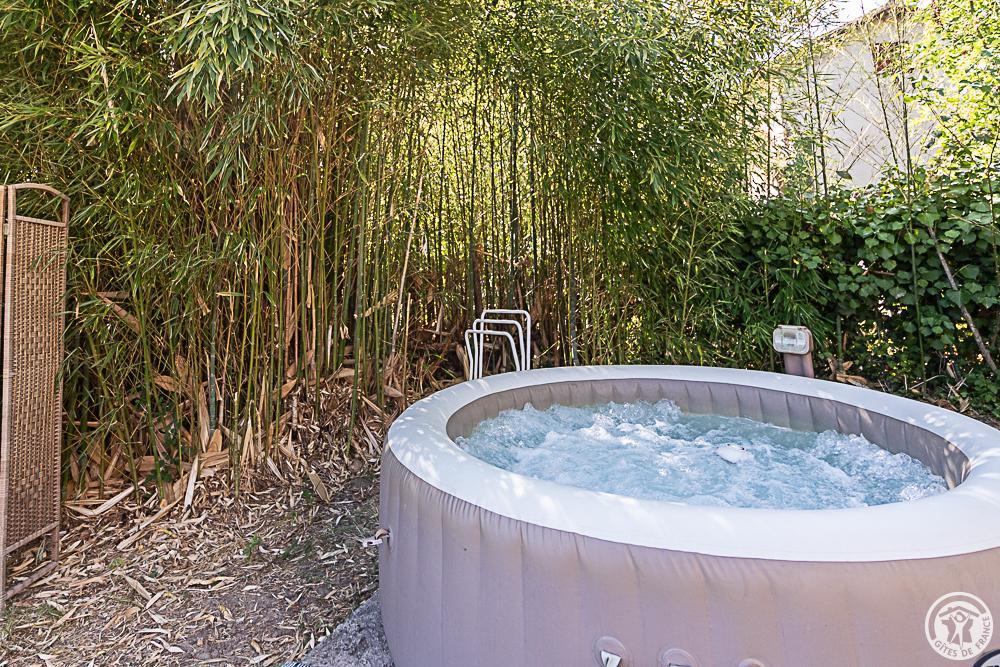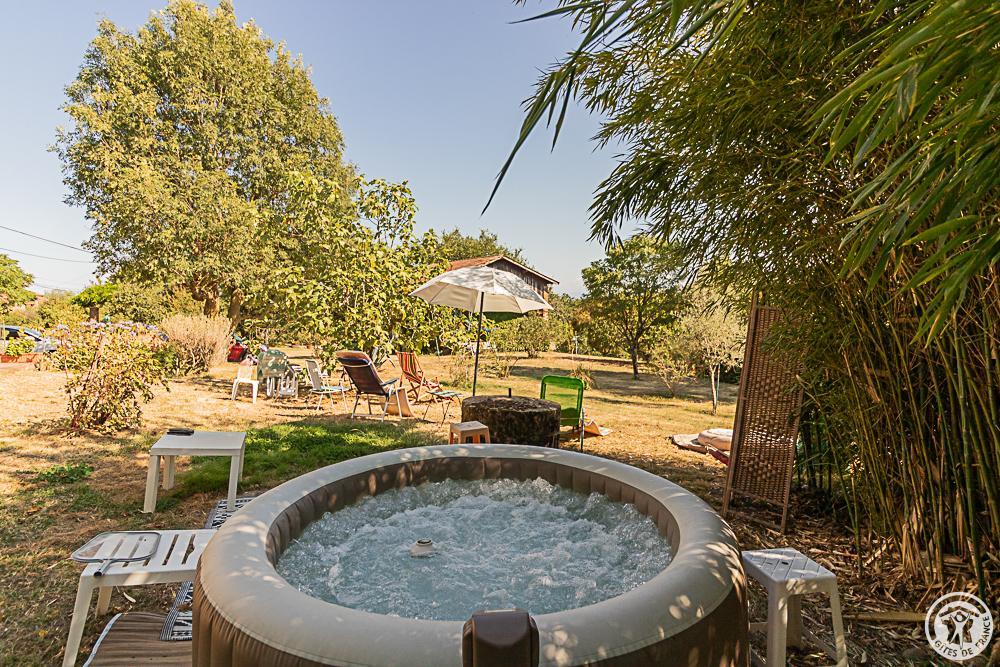 La maison est un véritable havre de paix avec une terrasse attenante à la cuisine, un coin barbecue/plancha à l’ombre du figuier, un jacuzzi gonflable entouré de bambous, des chaises longues pour admirer le panorama sur les Pyrénées et la forêt environnante, un boulodrome, des jeux et loisirs pour tous (portique pour les enfants, ping-pong, vélos d’appartement, babyfoot). Jardin clos, mare non protégée, aire de stationnement.