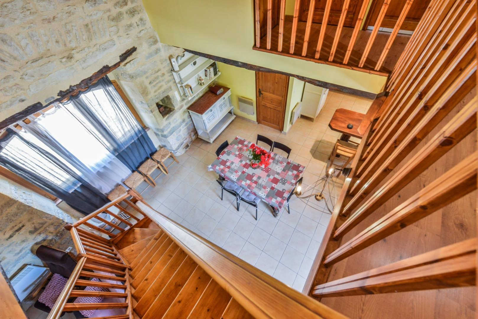 – On the ground floor: a large living room with sitting area in front of the fireplace, an open kitchen (dishwasher, mini-oven, kettle…), a separate toilet, a small laundry room with washing machine.