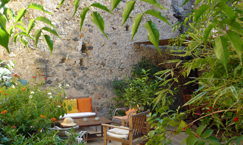 Spacious, quiet, sunny rooms on the 2nd floor of a 17th-century house in the heart of town, overlooking an inner courtyard where breakfast is served in summer.