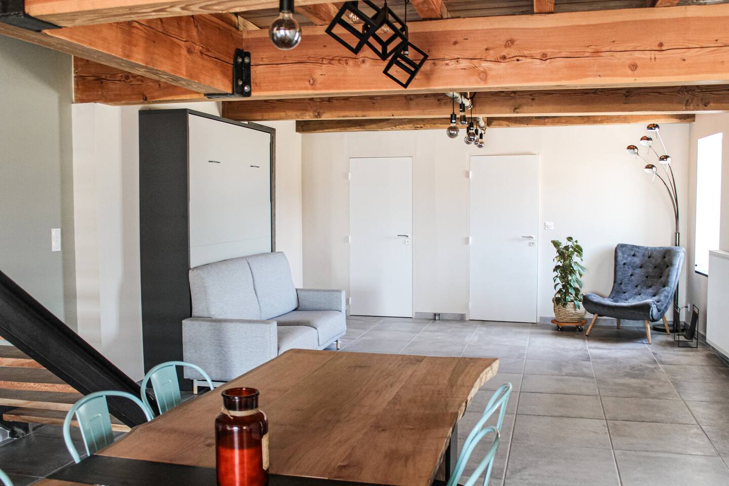 Bien que l’extérieur ne soit pas entièrement terminé, vous pourrez profiter d’un agréable salon de jardin avec barbecue pour des repas en plein air. Les propriétaires mettent également à votre disposition leur piscine, à partager avec eux, pour des moments de détente et de fraîcheur.