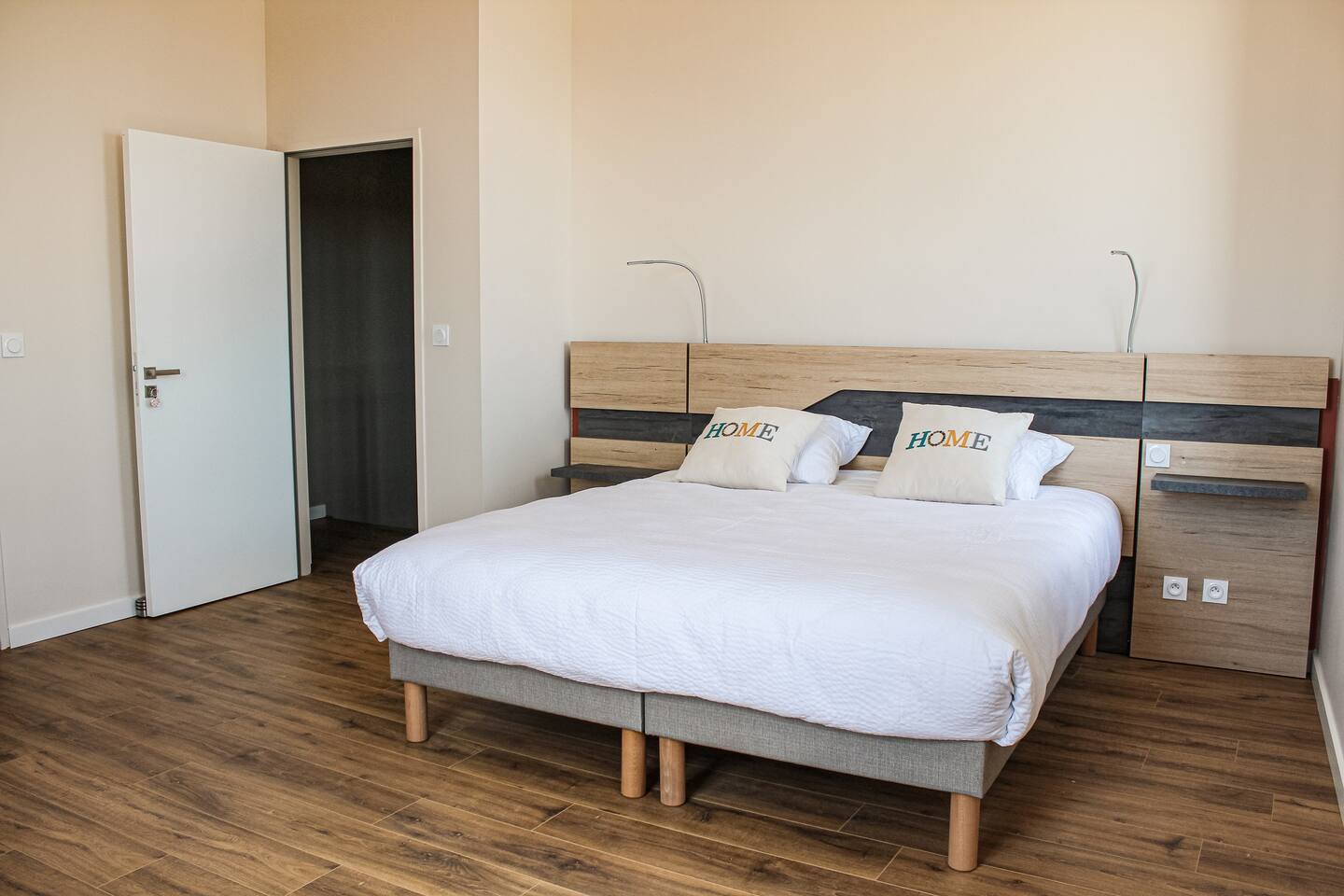Chambre 1 : Une chambre spacieuse avec un lit de 180 cm, équipée d’une salle d’eau et de WC privatifs.