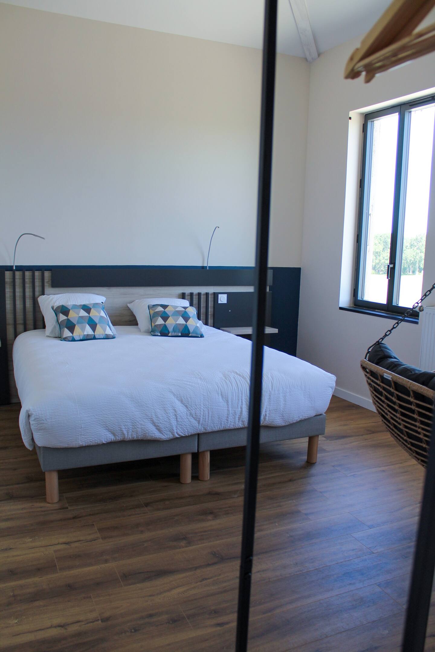 Chambre 3 : Une autre chambre avec un lit de 180 cm, disposant elle aussi d’une salle d’eau et de WC privatifs.