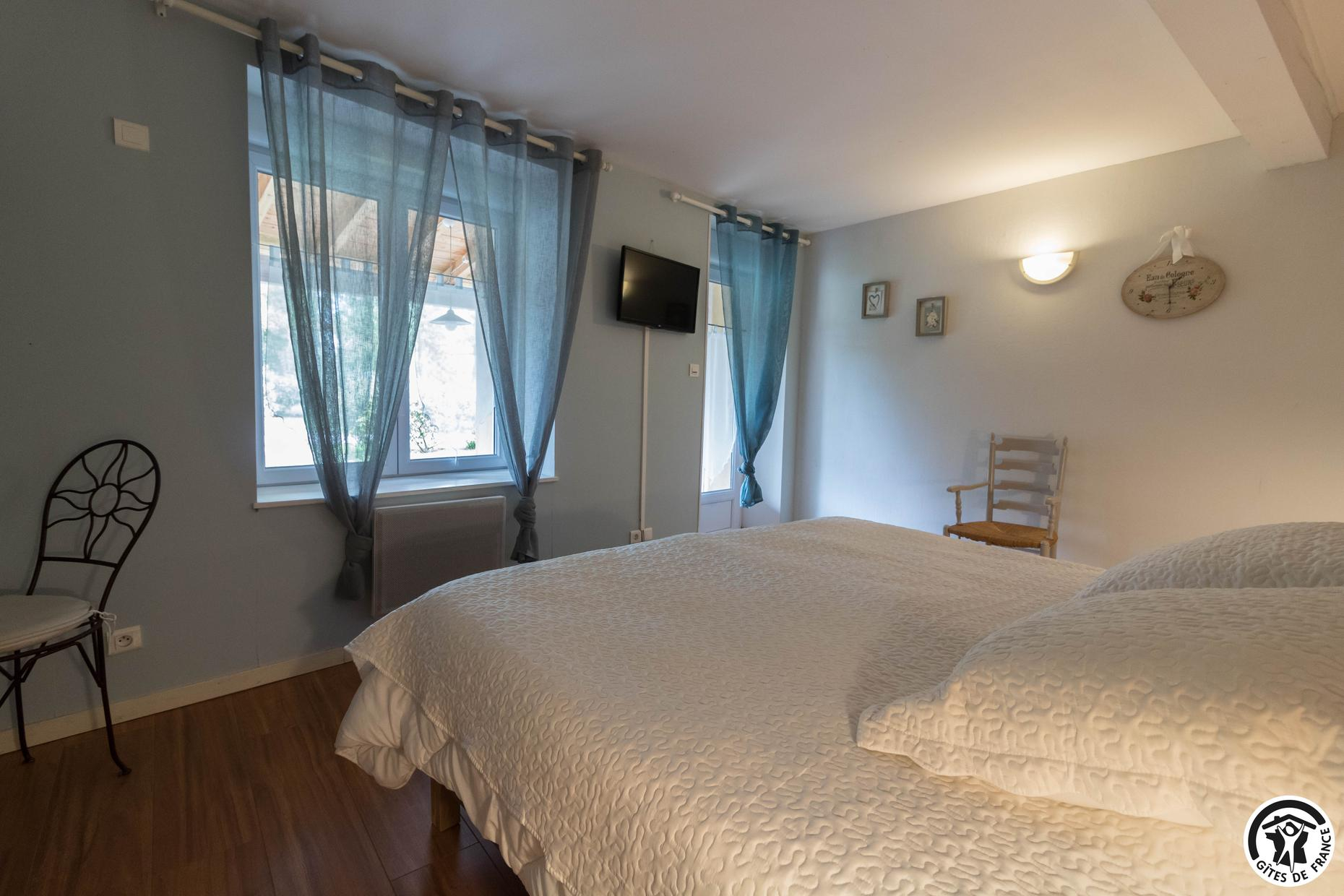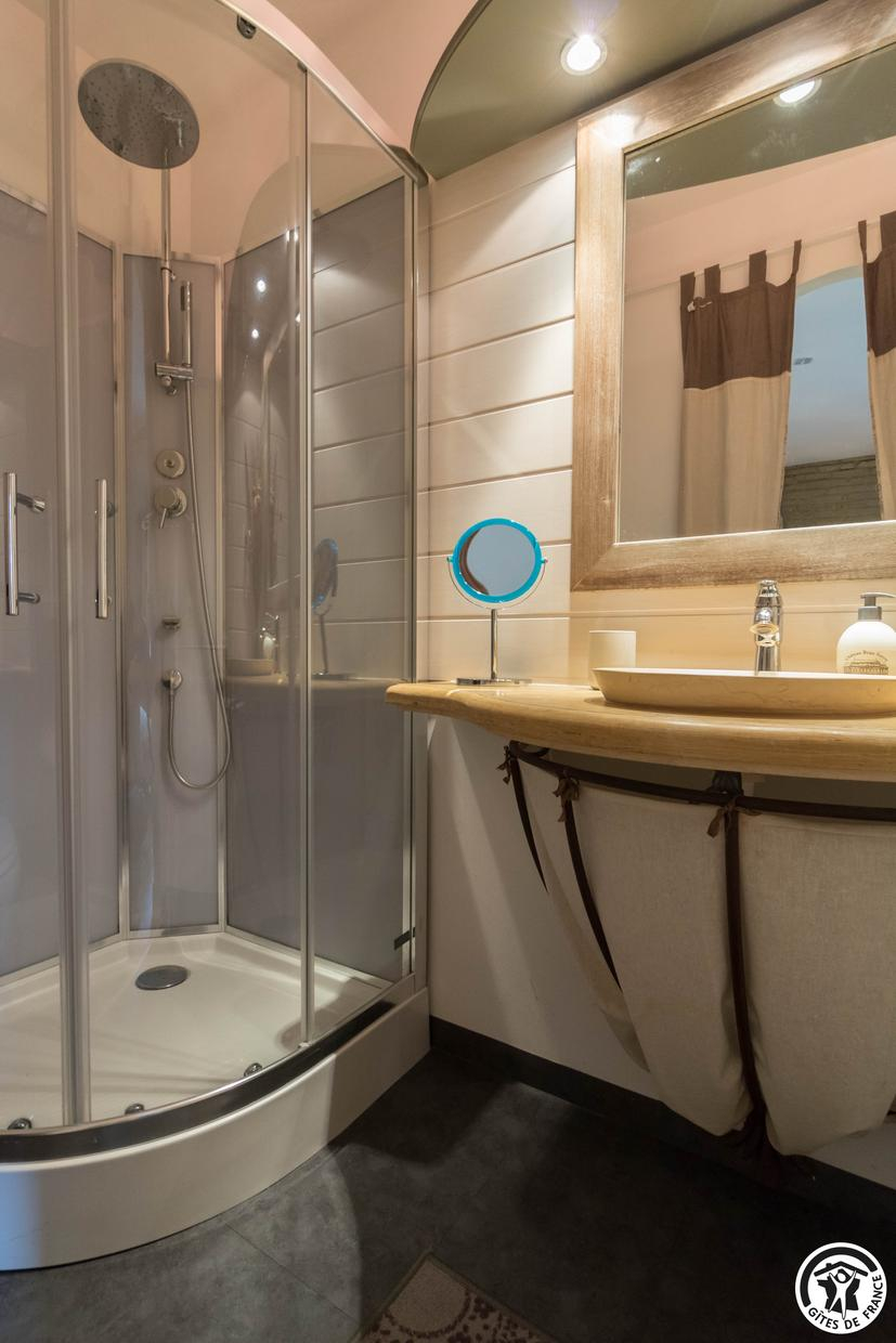 *- First floor: Bloom bedroom with mezzanine: 1 king-size bed 180×200+1 bed 140×190, private shower room/WC, Luna bedroom 1 king-size bed 180×200 +1 bed 140×190 + 1 bed 90×190, private shower room/WC. Chambre Stella 1 king-size bed 180×200, TV and private shower room/WC.