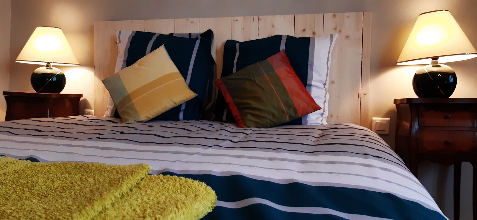 – De tweede “La Tournesol” is uitgerust met 2 bedden van 90. Op verzoek kunnen we ze verenigen om een bed van 180/200 te verkrijgen. Deze slaapkamer heeft ook een eigen badkamer met WC.