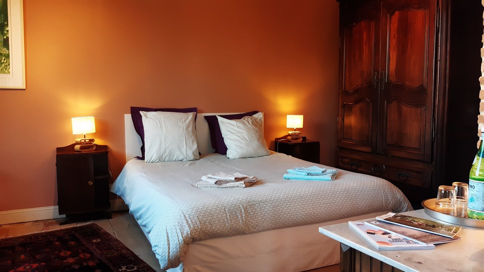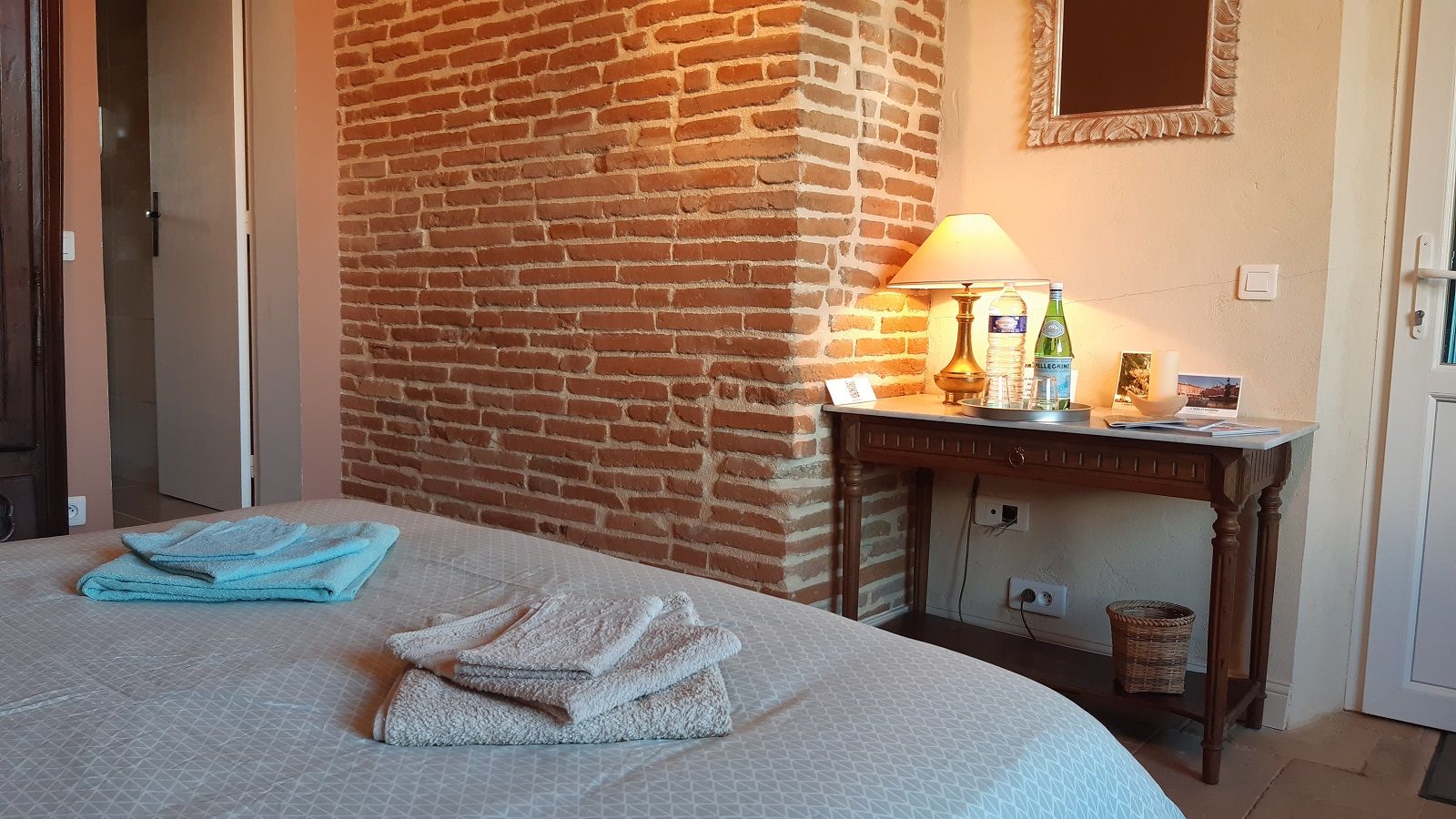 – De derde “La Montalbanaise” uitgerust met een 160/200 bed. De ochtendzon benadrukt het huwelijk van oude briketten en limoenpleisters. Een kamer waar het leven goed is. Dit heeft ook een eigen badkamer met WC.