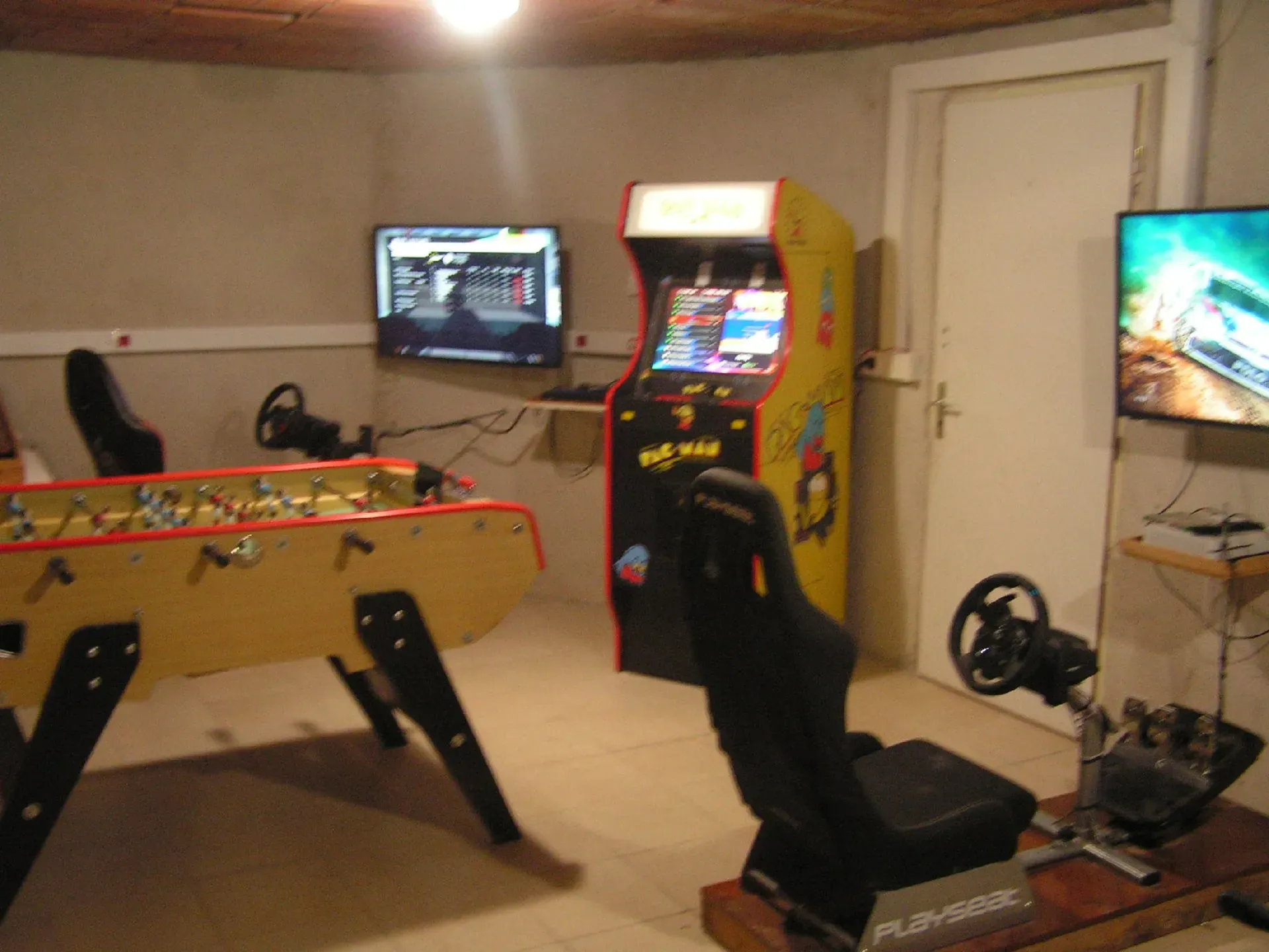 Location: RDC: véranda, cuisine fonctionnelle (lave-vaisselle, micro-ondes, four), espace de vie spacieux avec séjour et coin salon (canapé, 3 fauteuils, grande TV écran plat), 3 chambres avec 1 lit de 160 et 1 chambre avec un lit en 90. 1 salle de bain indépendante avec baignoire et douche, 1 autre salle de bain avec douche, 2 WC indépendant. 1er étage: 1 chambre double mansardée avec 1 lit de 160, 1 chambre twin mansardée avec 2 lits de 90.Sous-sol: coin buanderie avec lave-linge, salle de jeux spacieuse avec Baby-Foot, ping-pong, billard et airhockey, simulateur de conduite