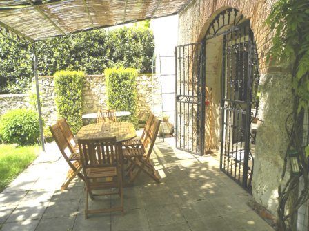 Terras met tuinmeubilair, barbecue. Elektrische verwarming. Videque.
