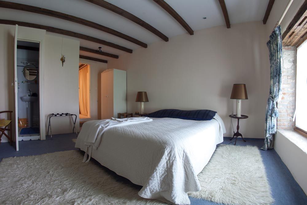 1e verdieping: 1 pk (2 bedden 90/200 cm), 1 kantoorkamer (1 bed 90/190 cm), badkamer (LL), gescheiden wc. 1 ha beboste park (privé), privéparkeren.