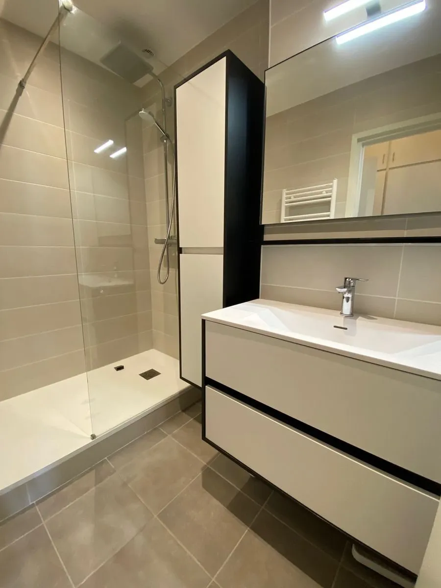 1 chambre (1 lit 140), salle d’eau, coin-cuisine (lave-vaisselle/lave-linge)/séjour (canapé, télévision), chauffage central.