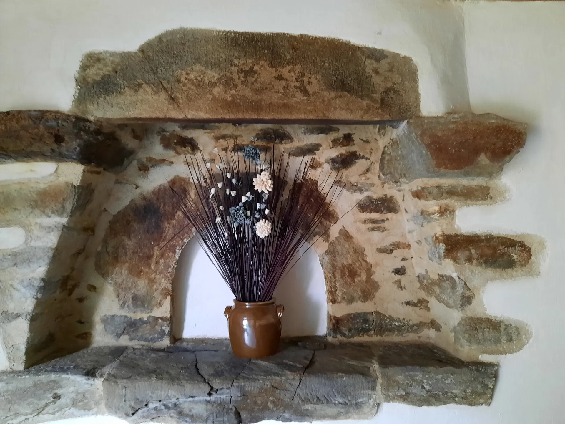Le rez-de-chaussée, avec cuisine et coin repas, s’ouvre sur une belle pièce à vivre qui a conservé les pierres d’un ancien four à pain. L’étage se compose de 2 chambres (1lit de 140 et 2 lits de 90) et d’une salle de bain. Le gîte dispose de 2 WC (un par niveau).