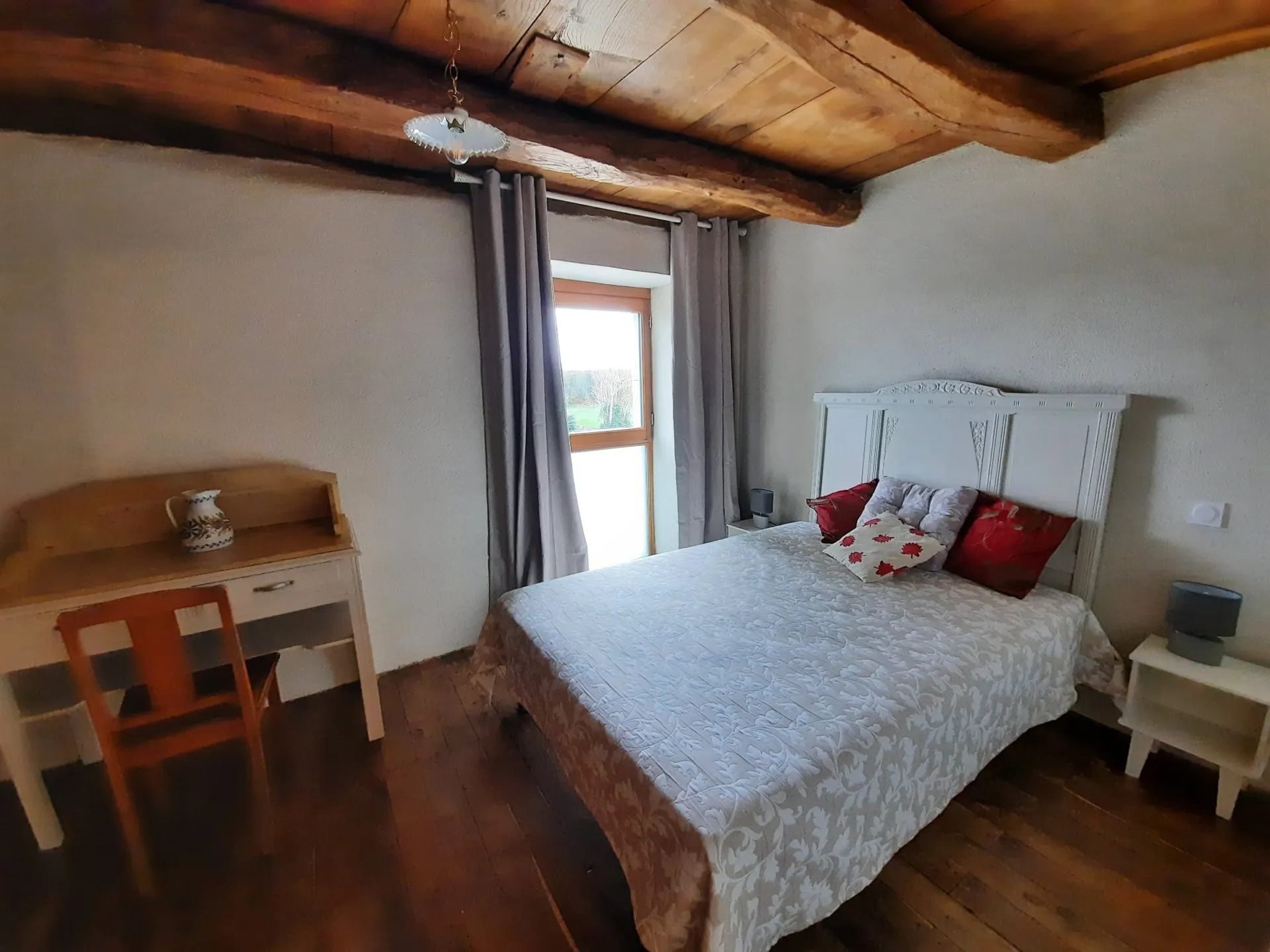 Le gîte de La Bessière allie confort et équipements modernes avec des matériaux traditionnels (pierres, lauzes, poutres en bois, isolation chaux chanvre).