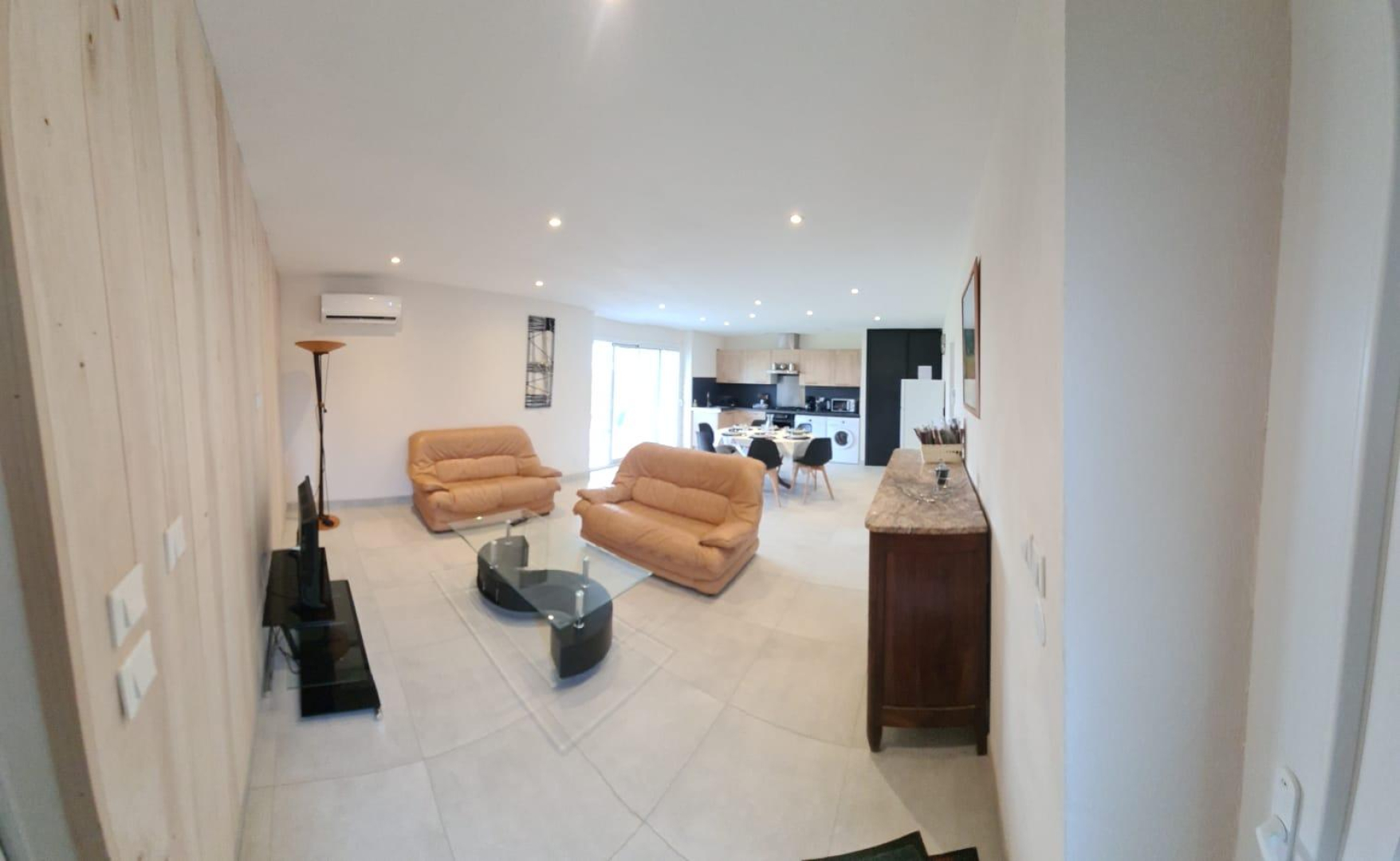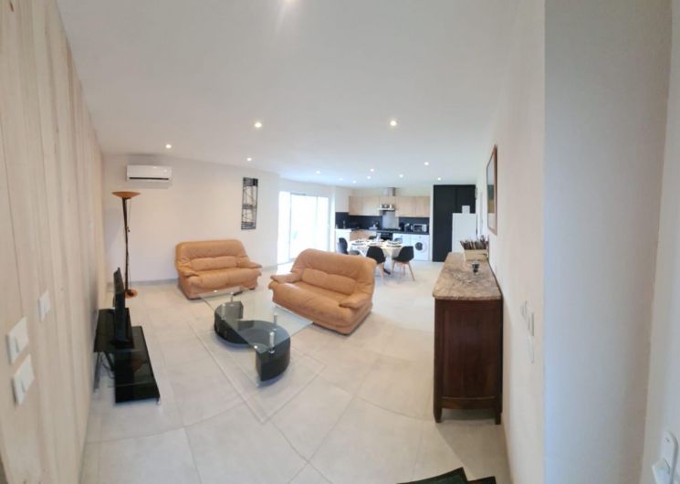Pièce à vivre avec cuisine ouverte toute équipée, 3 chambres.