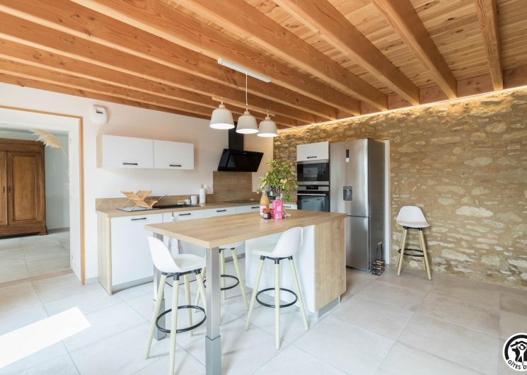 Sorèze grenen voor de parketvloer in de slaapkamers, natuursteen en balkenplafond op de begane grond. Marie-Célie, de eigenaresse, heeft 3 lange jaren besteed aan de renovatie van het voormalige molenaarshuis van de 4 nu verdwenen molens van Montbel voordat ze deze gîte opende. Met passie en vasthoudendheid biedt ze je een comfortabel familieverblijf in een rustige woonwijk. Het voordeel van zo dicht bij het dorp te zijn, is dat alles hier op loopafstand is: winkels, restaurants, cultureel centrum, meer, enz. De Gîte “Les Echaunes” dankt zijn naam aan de oude wijk waar de ouders van Marie-Célie woonden, een familie die oorspronkelijk uit de Drôme kwam. Door de samenstelling van de foto’s krijg je zin om deze prachtige Lauragais-streek te ontdekken: Toulouse, op 30 km, met zijn Place du Capitole; de gastronomie van het zuidwesten, cassoulet, viooltjes en eend; Caraman, met zijn zwemmeer, zijn markt en zijn kenmerkende quorumvorm. De namen van de kamers zijn ook zorgvuldig gekozen: “Souleilla”, in het Occitaans, voor de zonnige hellingen die kenmerkend zijn voor de Lauragais-streek, en “Canal du Midi”, de uitzonderlijke creatie van Pierre-Paul Riquet, die de Atlantische Oceaan met de Middellandse Zee verbindt, op 20 km van de gîte. Revel-Lac-Saint-Ferréol ligt op 23 km: Grand Site Occcitanie, zwemmeer en Cité d’Art; en Carcassonne ligt op 78 km. Gîte op 2 niveaus met een omheinde tuin van 300m2, ruime parkeergelegenheid: – Begane grond: entree – aparte WC – ingerichte keuken – woon/eetkamer. – Eerste verdieping: slaapkamer “Souleilla” (1 tweepersoonsbed 160X200cm en 2 eenpersoonsbedden 90X190cm, op de mezzanine na een steile trap, 1 extra eenpersoonsbed op aanvraag) en slaapkamer “Canal du Midi” (1 tweepersoonsbed 140X190cm) elk met eigen doucheruimte en WC. Omkeerbare airconditioning in elke kamer. Buitenspelen: jeu de boules, molky en volleybal. Let op: de gevel wordt momenteel gerenoveerd. Traduction automatique par DeepL via DATAtourisme