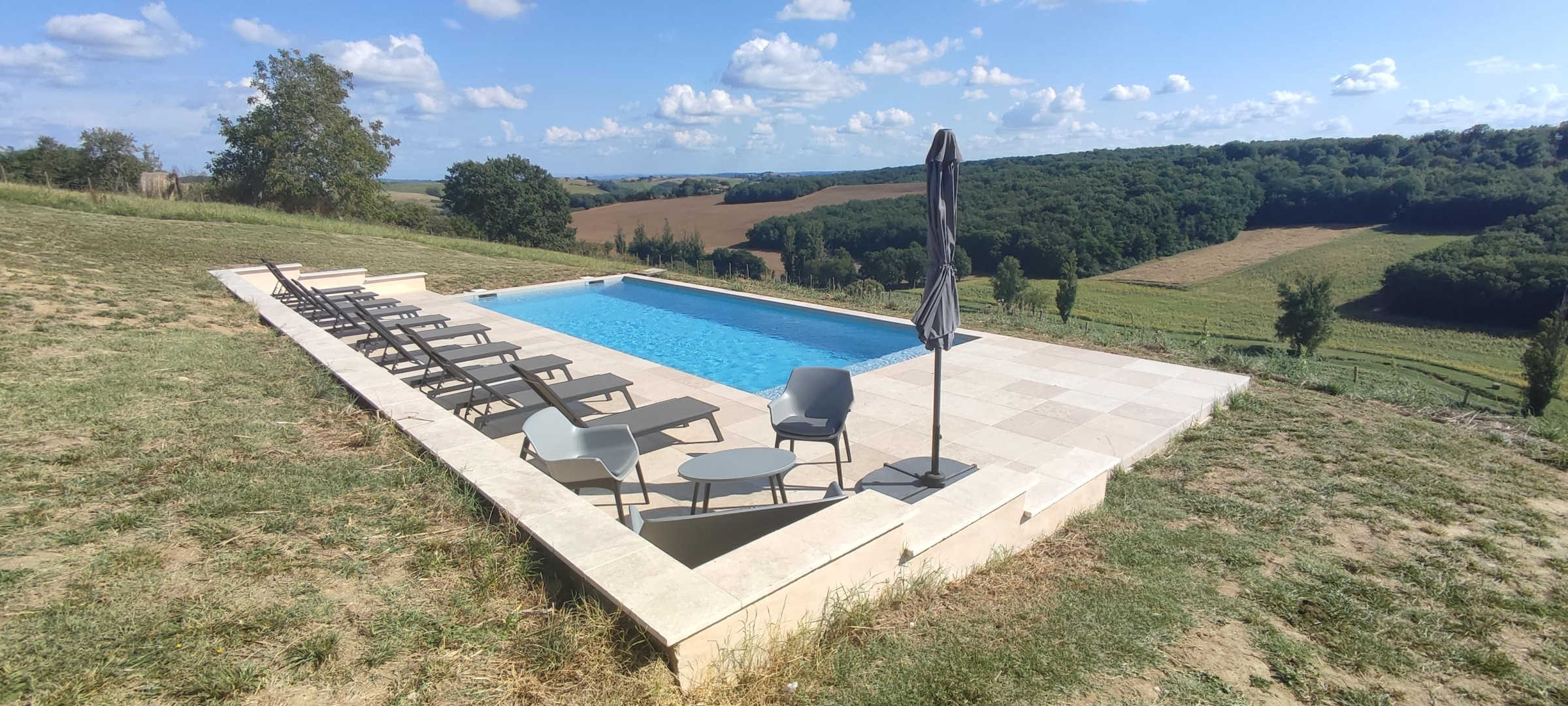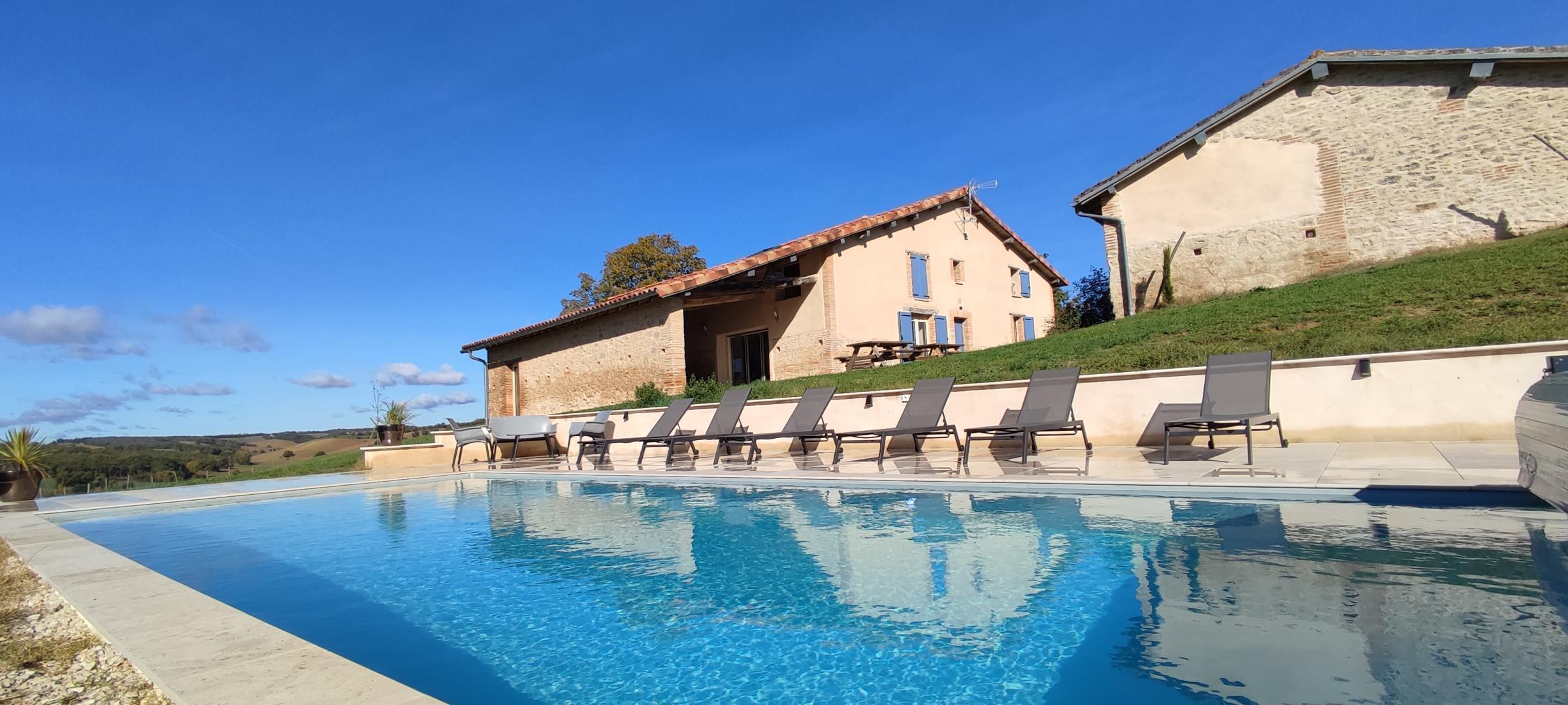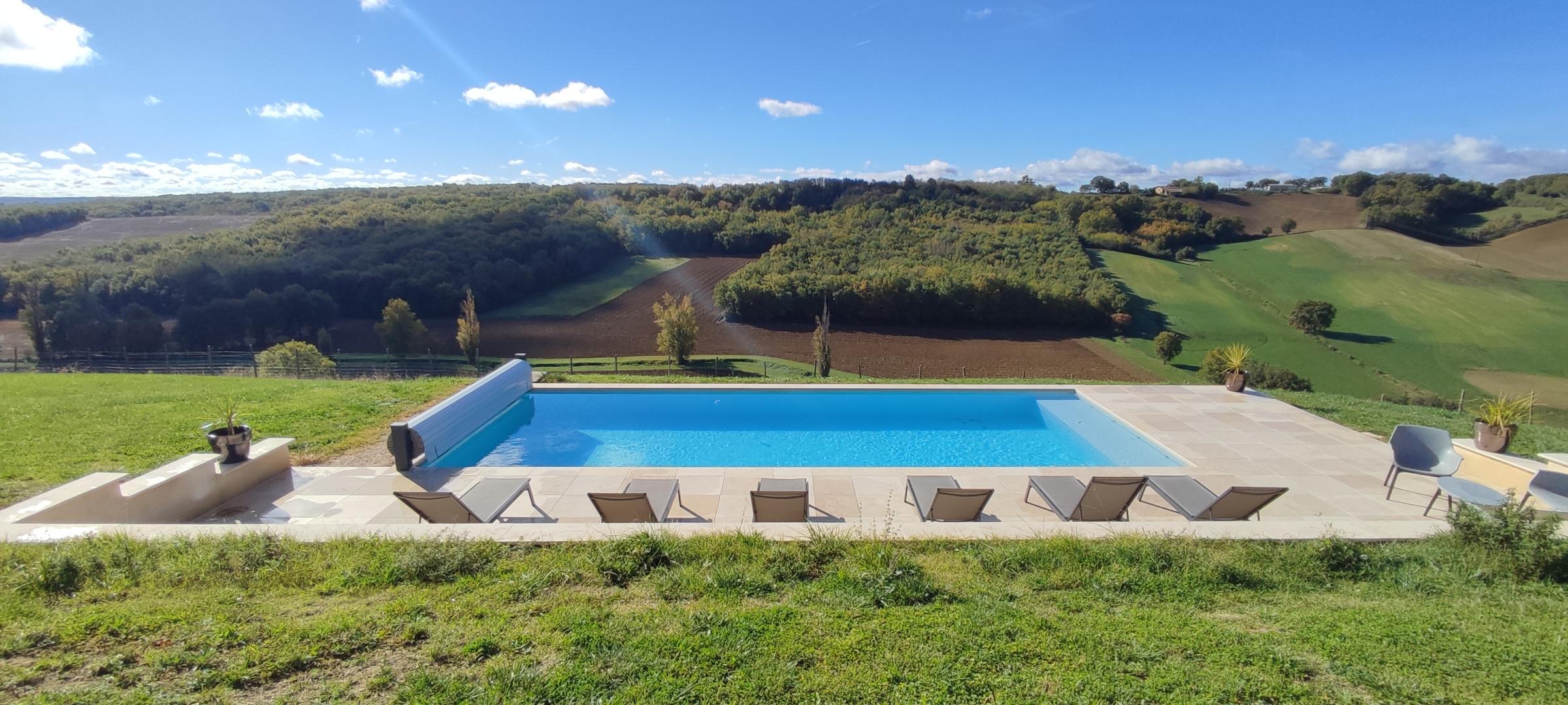 Une piscine privative qui surplombe la campagne, deux terrasses couvertes, de vastes espaces pour partager de doux moments dans cette maison rénovée avec tant d’amour.