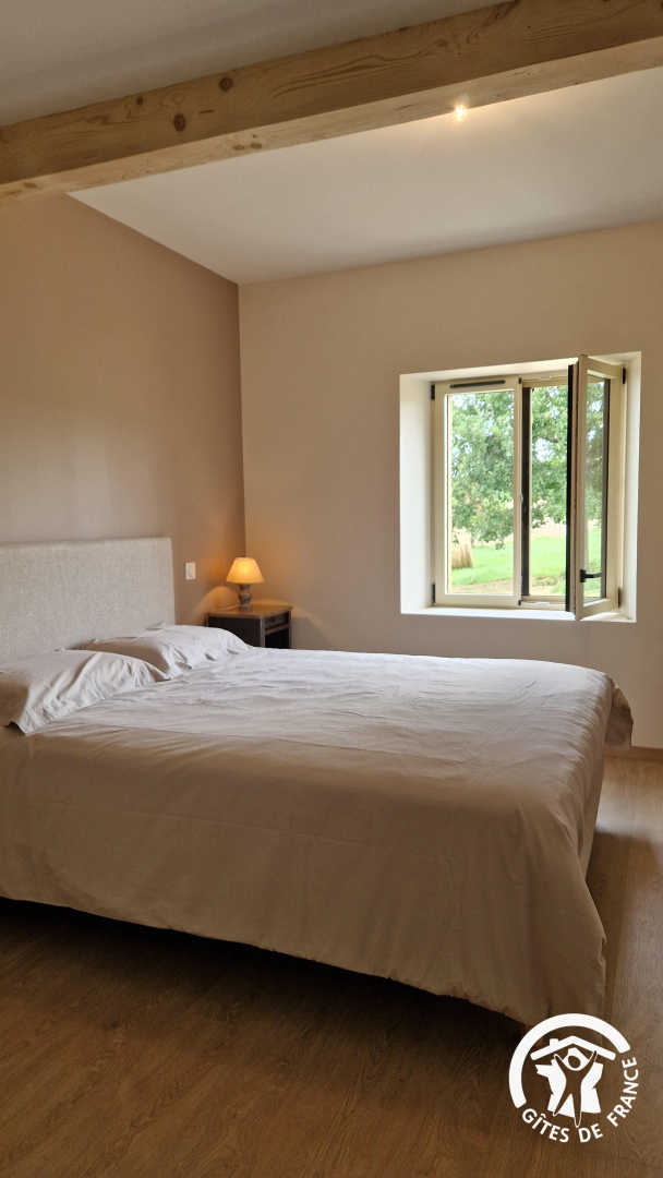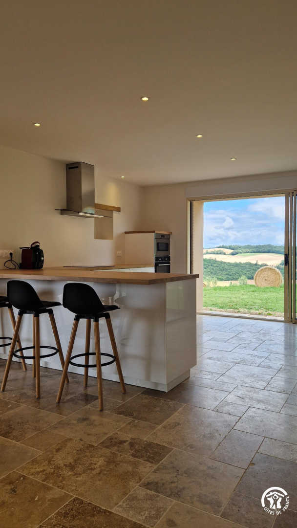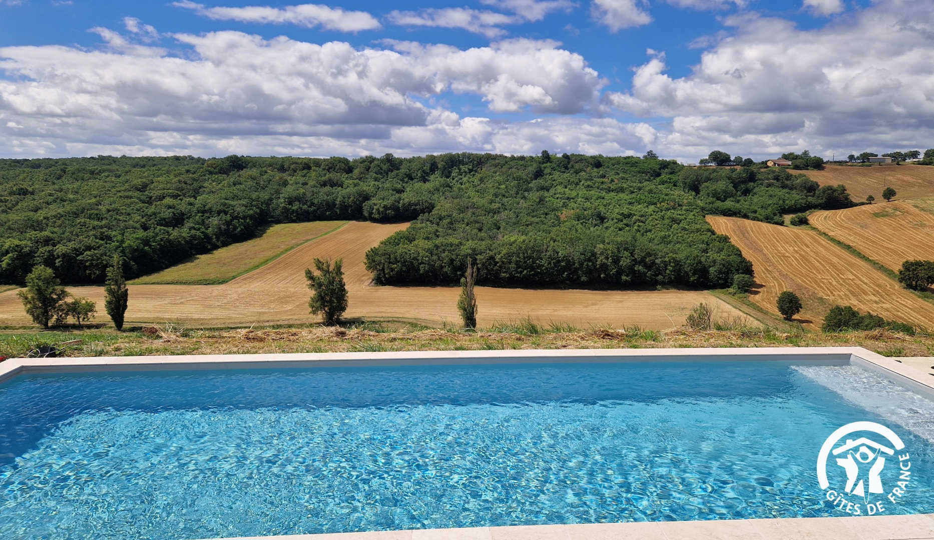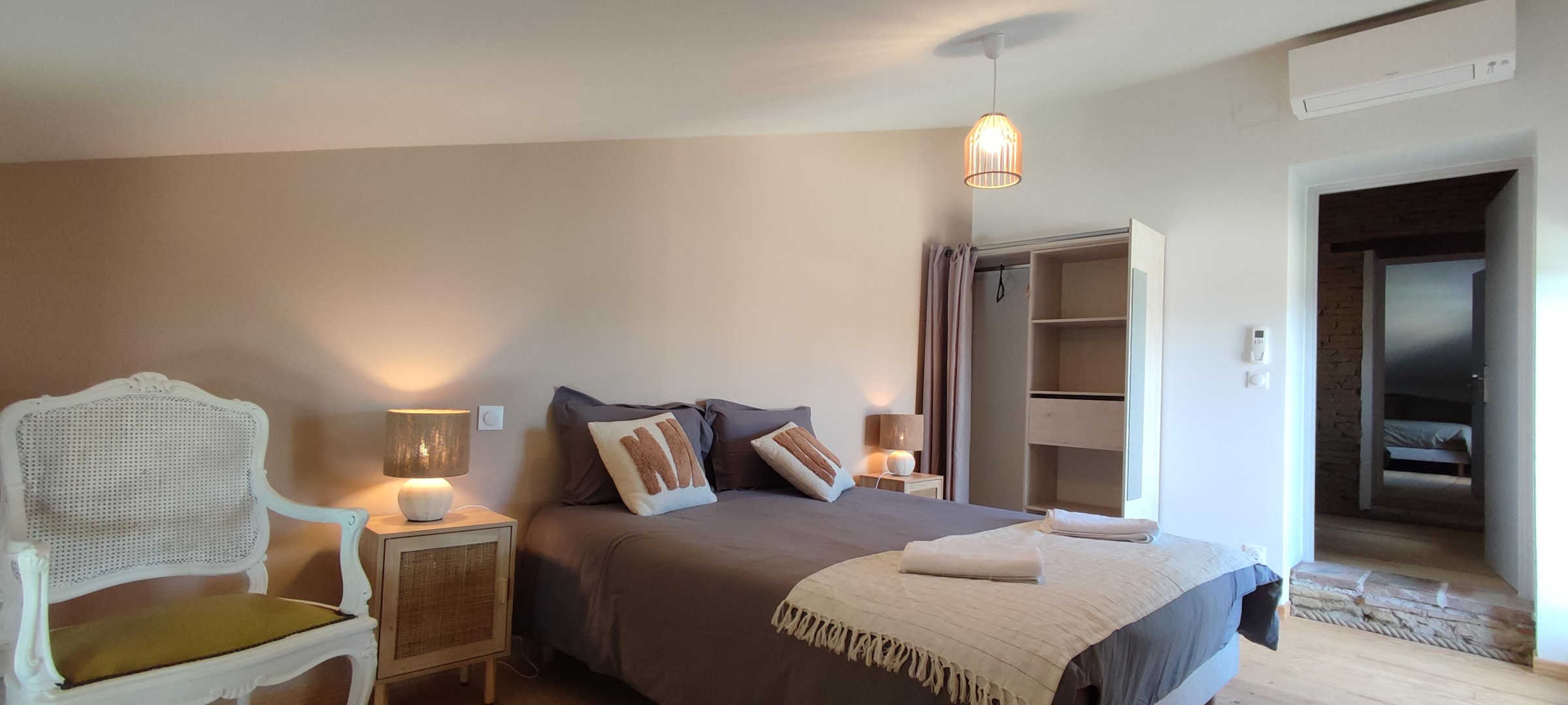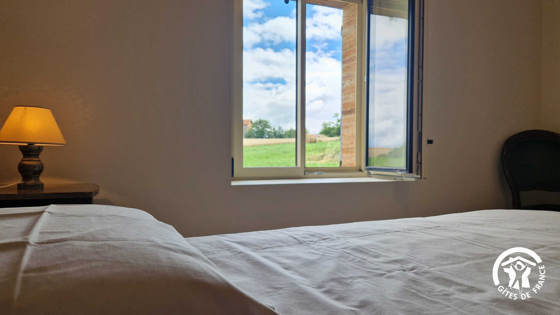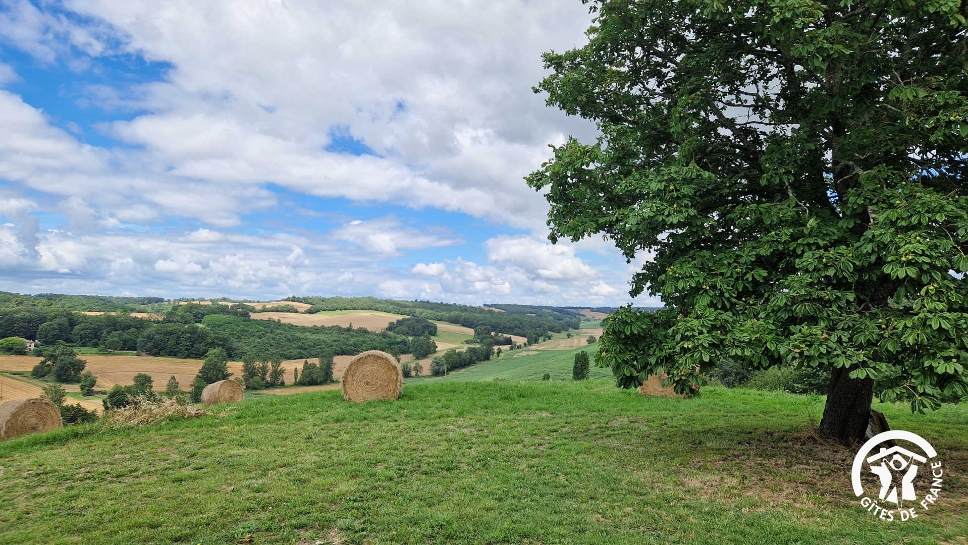 Gîte indépendant, climatisé, situé au bout d’un chemin de terre : vous avez la sensation d’être bout du monde avec cette vue imprenable.