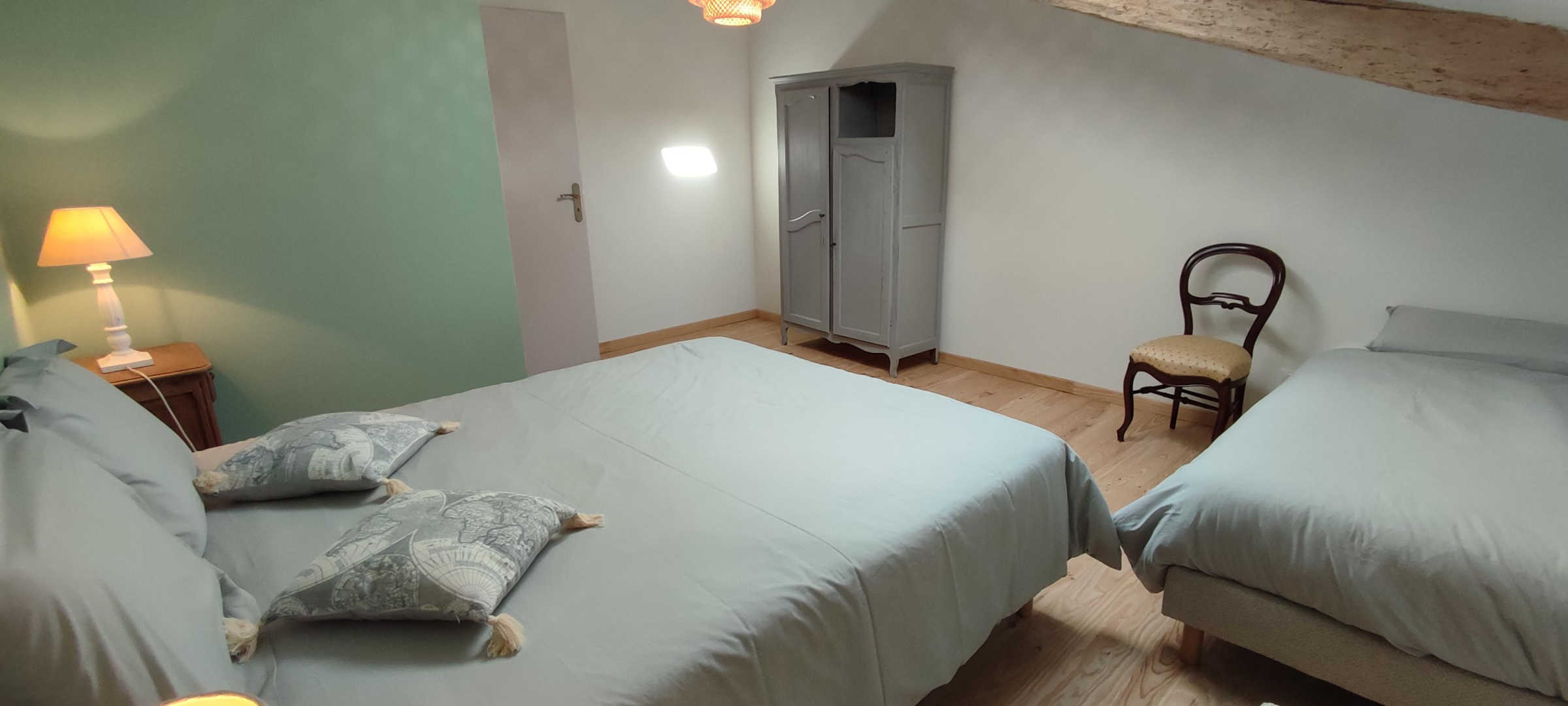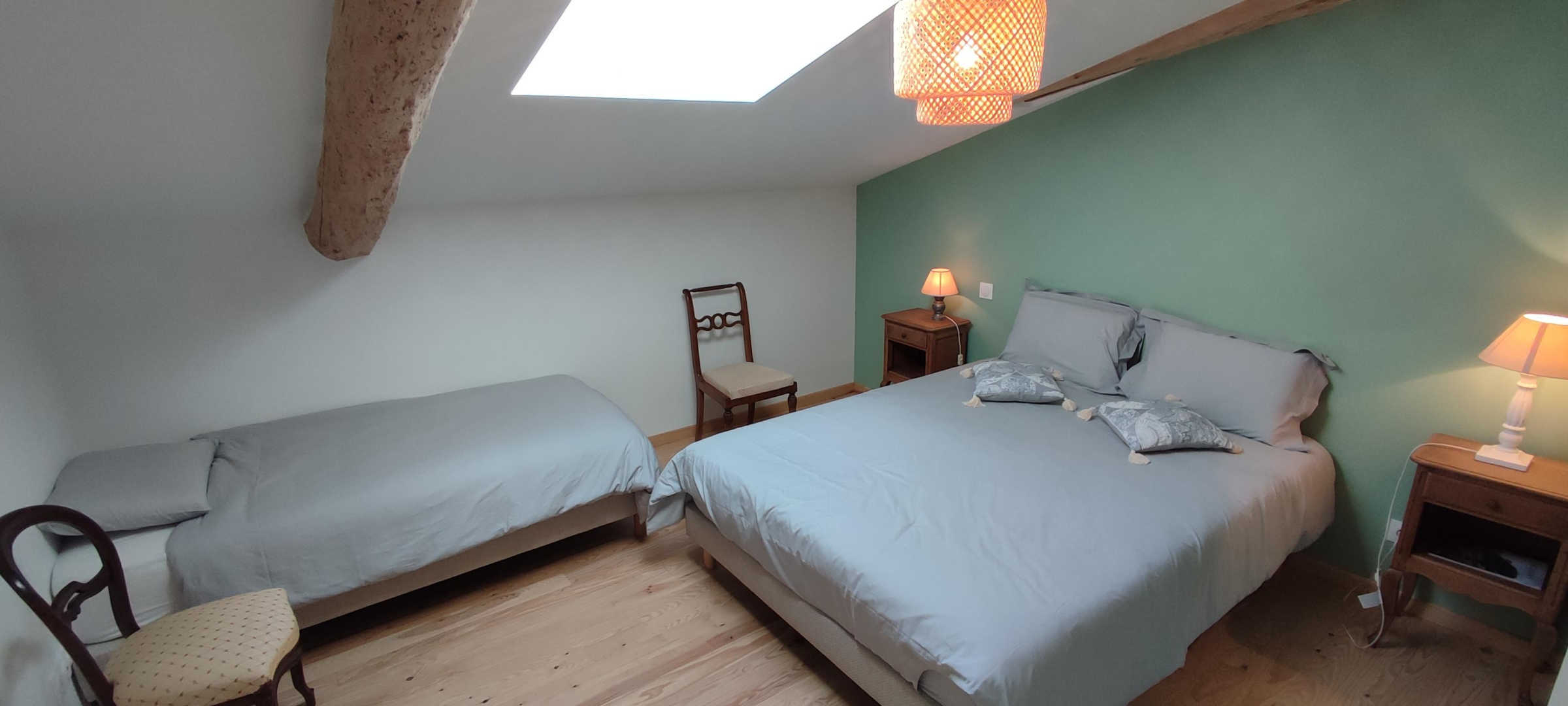 – chambre avec 1 lit double 160×200 et 1 lit simple 90×190