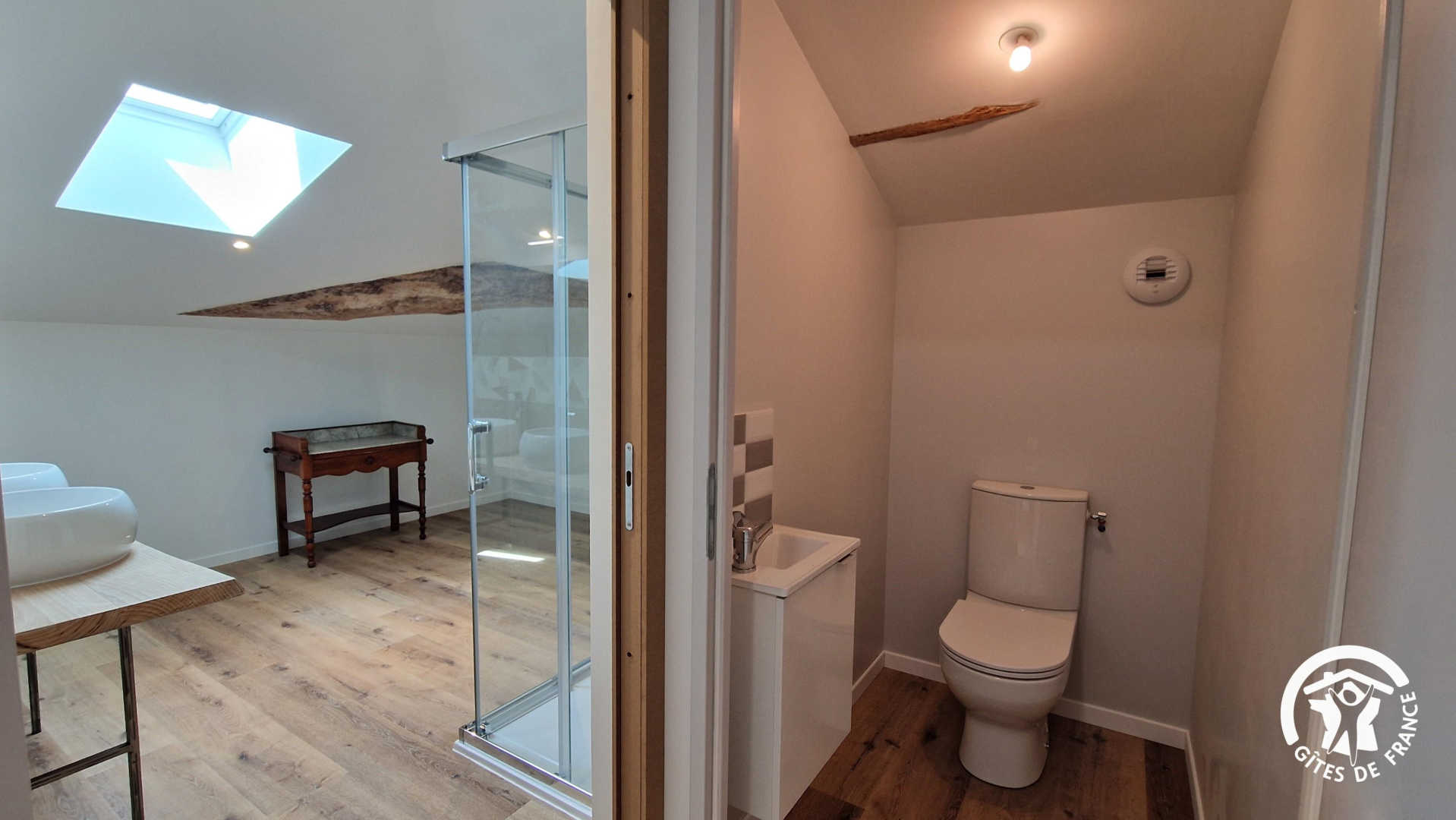 Les extérieurs : environ 8000m² de jardin clôturé qui s’étend ensuite sur la vallée. Parking aménagé à côté du gîte.