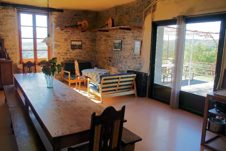 Large cottage house in rural location. Half-board is possible on demand. Living room with equipped kitchen, big fireplace, leisure space. Panoramic terrace, garden, library. Exclusive occupation of the house starting from 15 paying people. WI FI access. Documentation on the region and topography guides for hiking or climbing… Reservation of your activities on demand (canoeing, via ferrata, tandemflights, climbing. Do not hesitate to contact us!