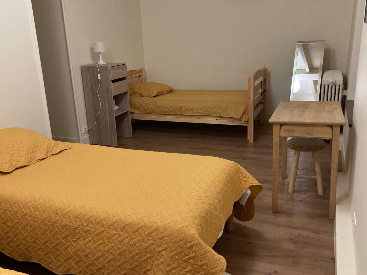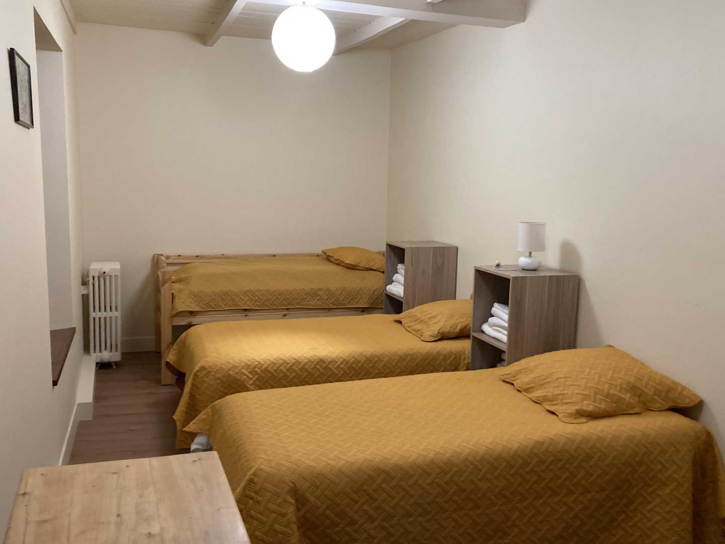 – 1 chambre avec 4 lits simples (90×190) personne,