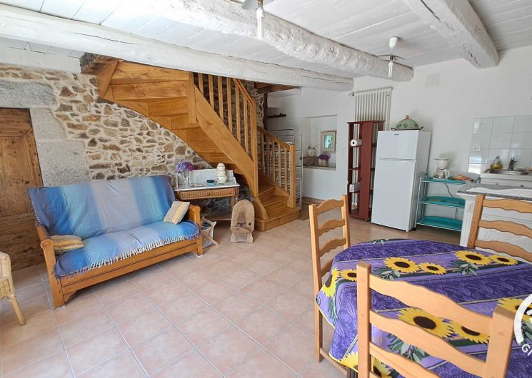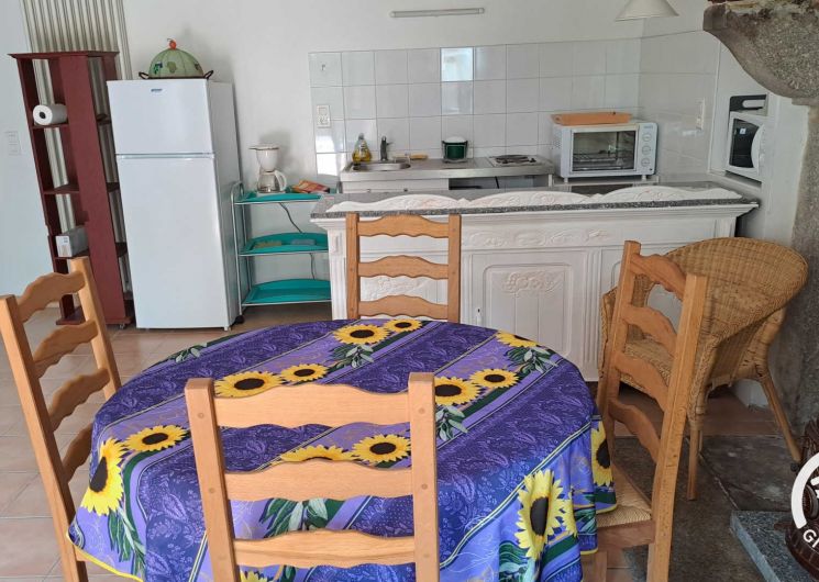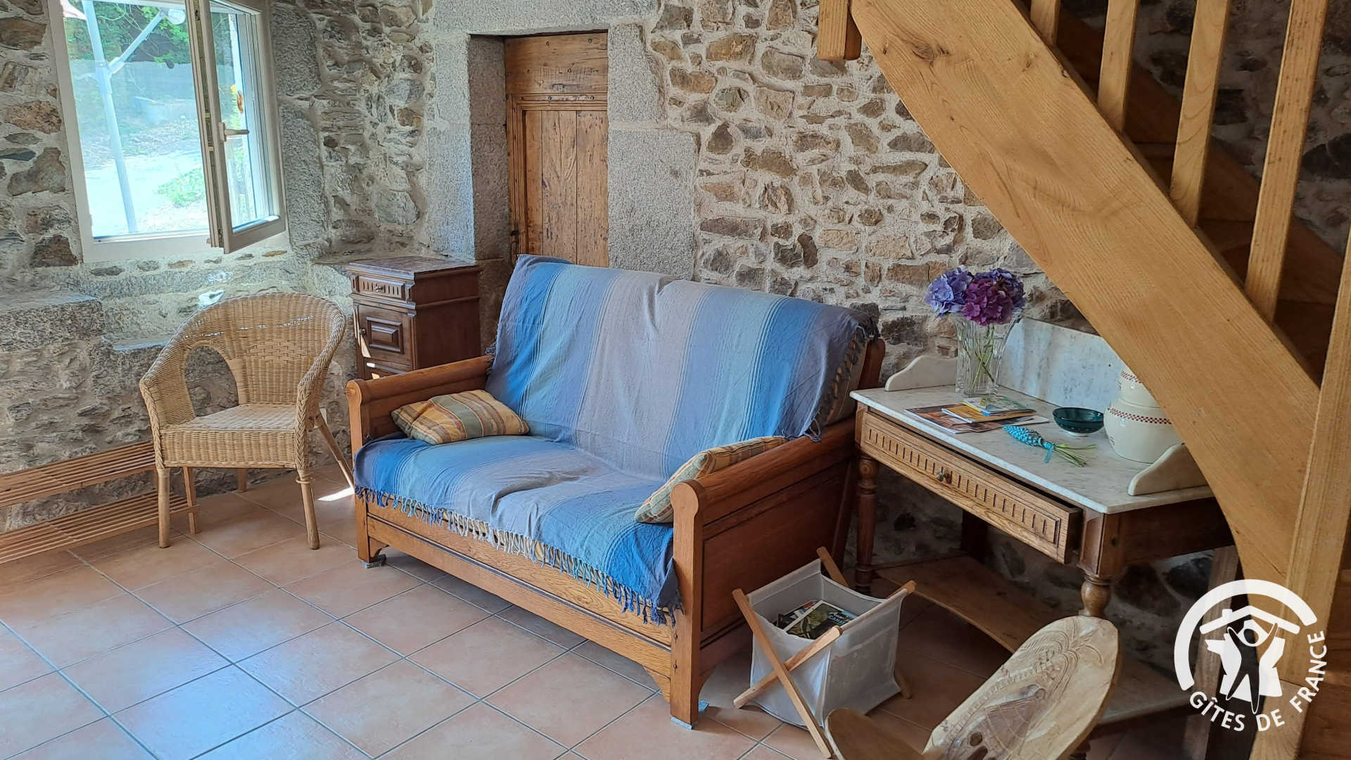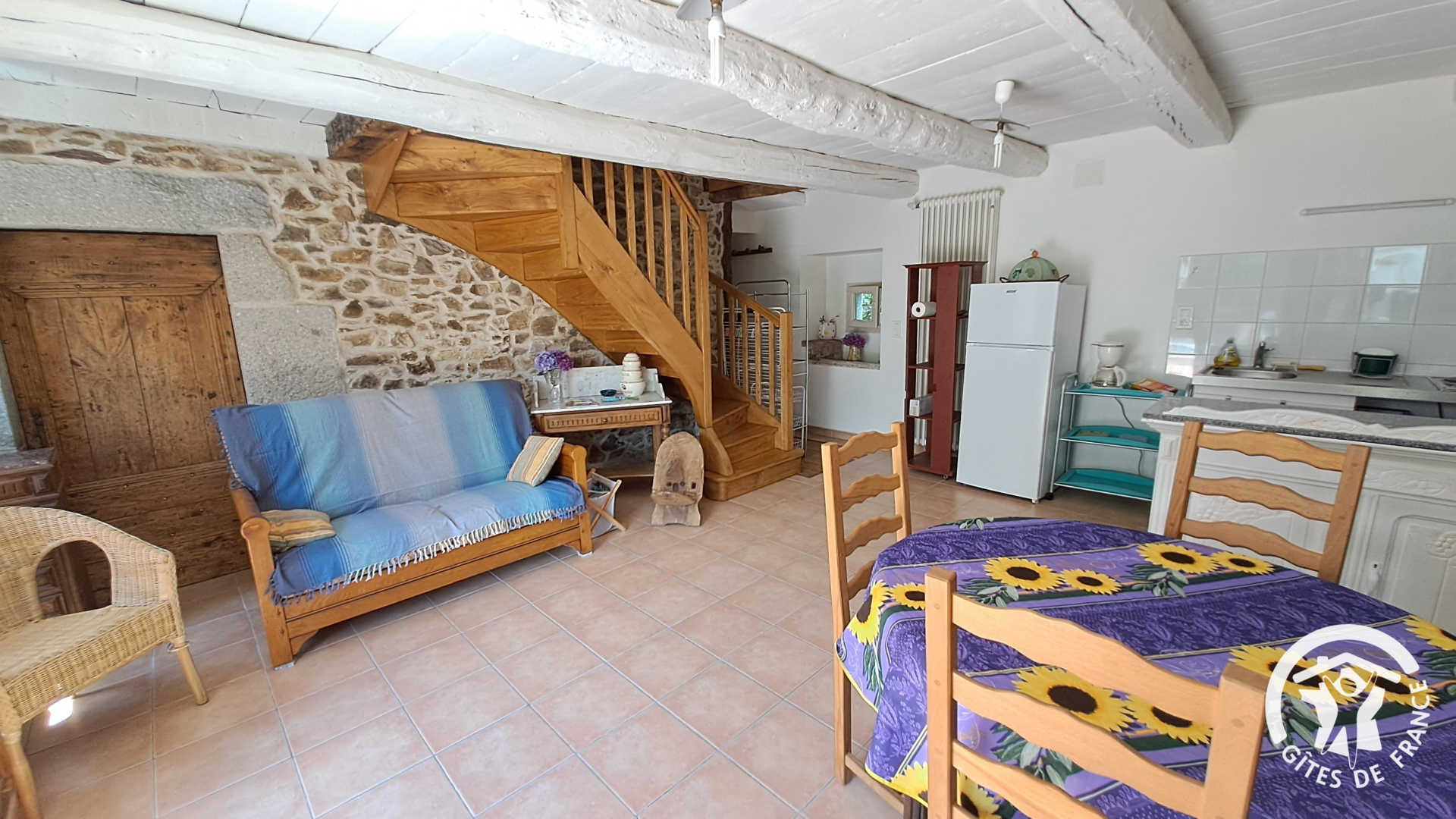Small gîte adjoining the owner (uncluttered view)situated in the hamlet, with 2 possible accesses whereof an independent one. Courtyard, terrace with garden table & chairs, BBQ. GR.FL. : living-rm-cum-open kitchen, sofa, TV, shower rm, WC. Upstairs: 1 bdrm (1 dble bd, 1 bd 2ft3, baby bd on request). Fuel heating. Washing mach., micro-wave, mini oven, 2 electric plates, top fridge. Sheets and towels renting. House linen supplied. Cleaning service. Ideal for couples’ stay, you will find in this small gîte the peaceful ambience of the granitic Sidobre massif, half-way between Lacaune and Castres. Situated in the heart of the Sidobre, it will enable you to bike or drive to the discovery of the various rocky formations, with their extraordinary shapes, or to the lake of Le Merle.