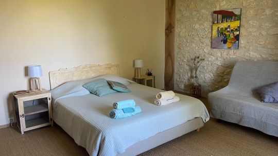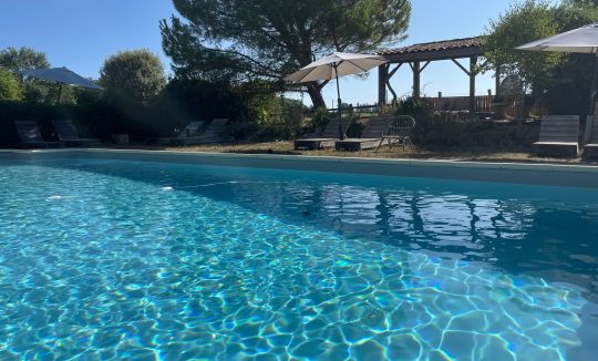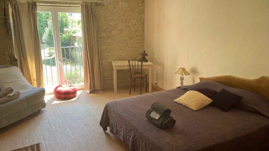 Sur place se trouvent plusieurs chambres et gîtes, un chai transformé en salle de réception avec cuisine équipée et pour les musiciens, piano et guitare à disposition. Piscine commune, parc paysagé et animaux (ânes, adorable chien, chats et bientôt poules, chèvres naines, pigeons et palombes).
