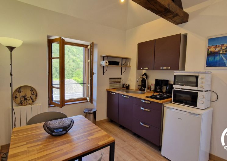 Vous disposez de 24m² répartis en un espace nuit, une salle d’eau et un séjour avec cuisine. Les extérieurs se déclinent en deux terrasses indépendantes dont une équipée d’une plancha. Le gîte offre une vue imprenable sur les toits pittoresques du village d’Ambialet et est idéalement situé à proximité de la rivière, offrant un cadre paisible et relaxant pour votre séjour.