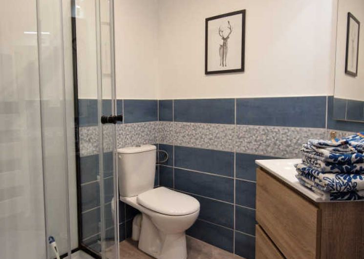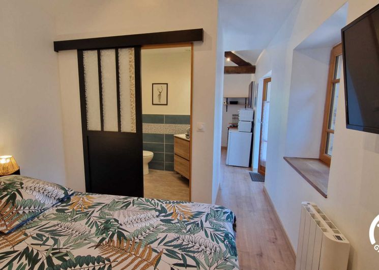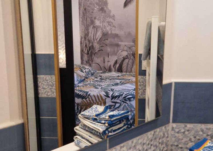– Salle d’eau attenante à l’espace nuit avec douche, vasque, sèche-serviette électrique et WC.