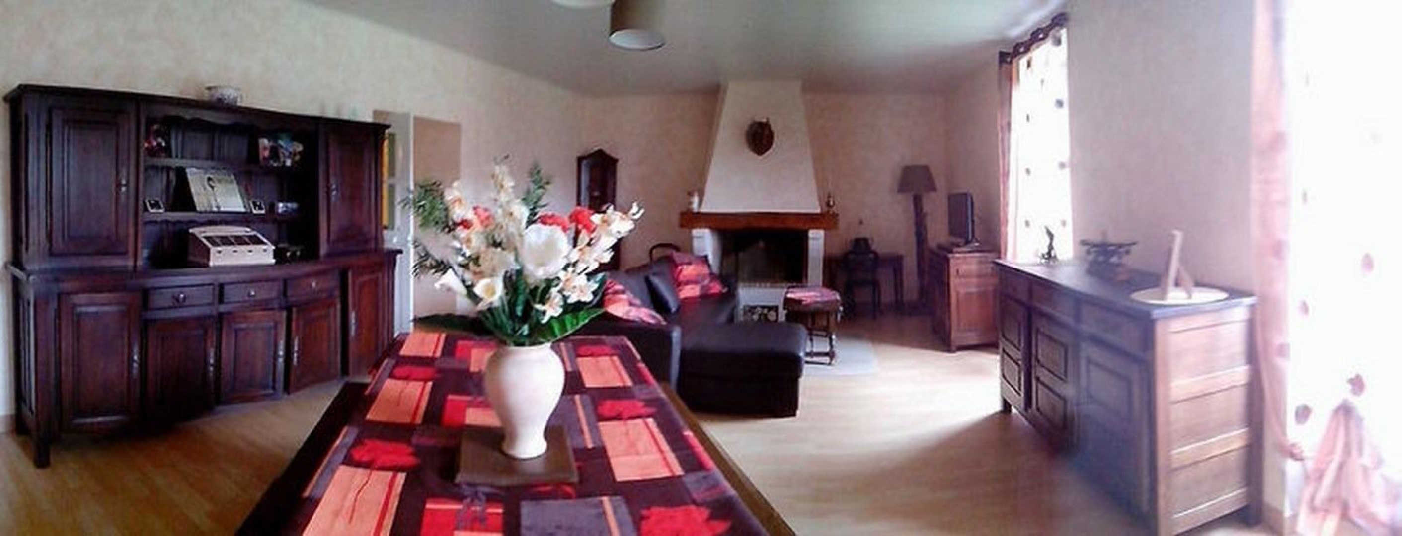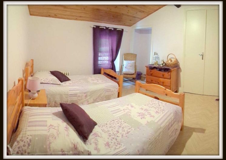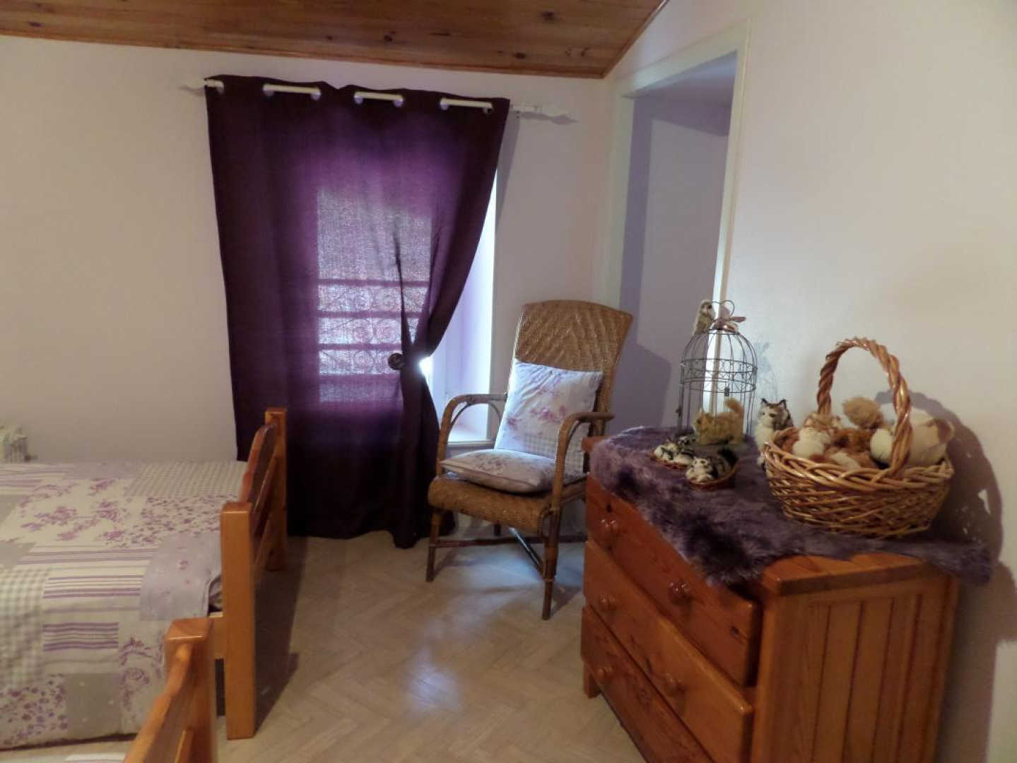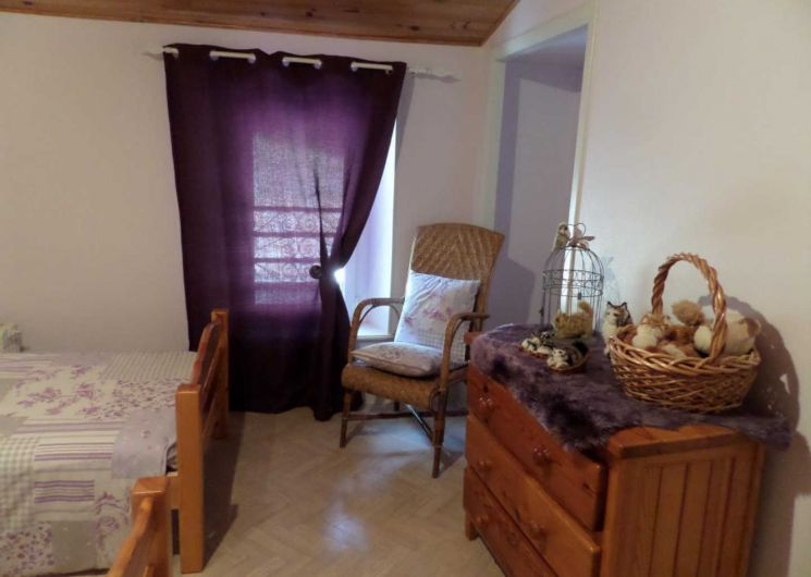 Gite with large lot, covered terrace, barbecue. Ground floor: entrance hall with fireplace, fully equipped kitchen, living/dining room (sofa bed), bedroom, bathroom with wc, utility room which leads to the floor (steep stair). On the first floor: two bedrooms, bathroom with wc. Heating central heating oil. Cots available. Possible rental of sheets and towels? Service end of stay housework?