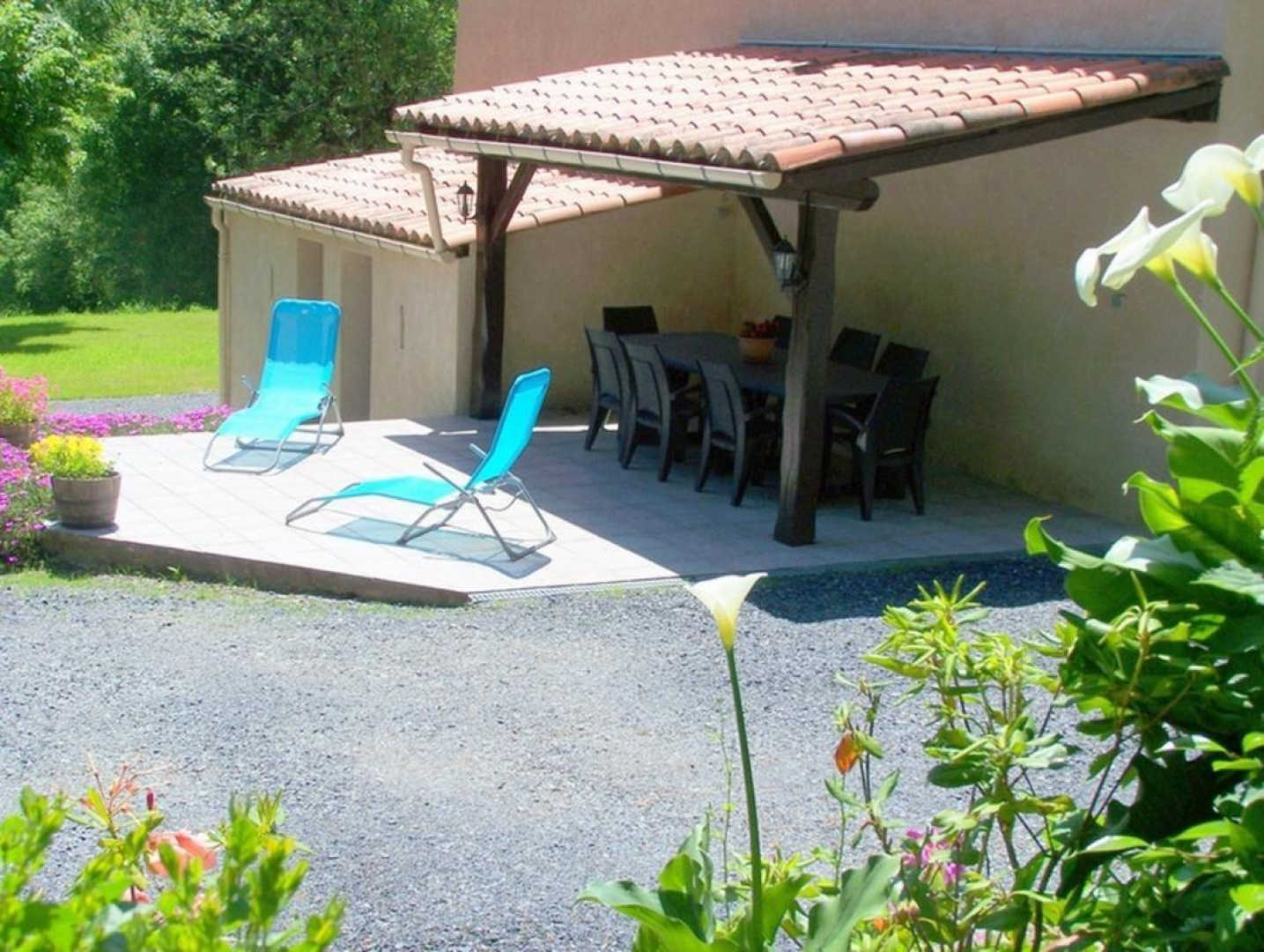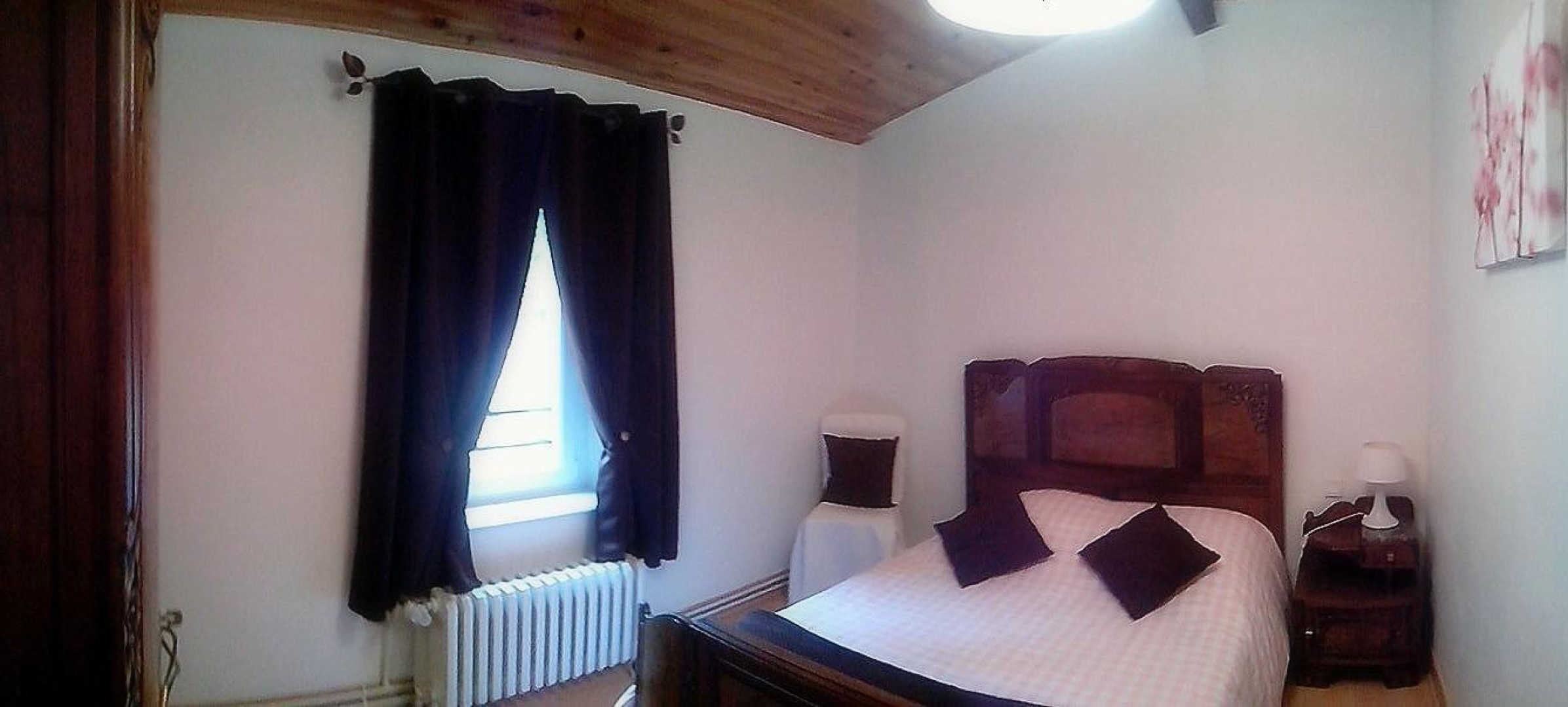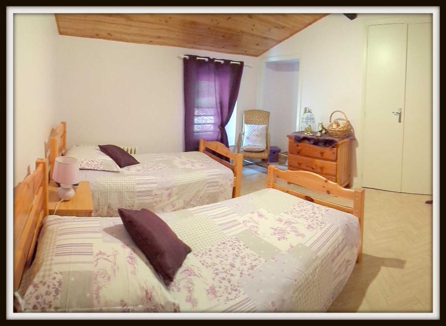 Gite with large lot, covered terrace, barbecue. Ground floor: entrance hall with fireplace, fully equipped kitchen, living/dining room (sofa bed), bedroom, bathroom with wc, utility room which leads to the floor (steep stair). On the first floor: two bedrooms, bathroom with wc. Heating central heating oil. Cots available. Possible rental of sheets and towels? Service end of stay housework?