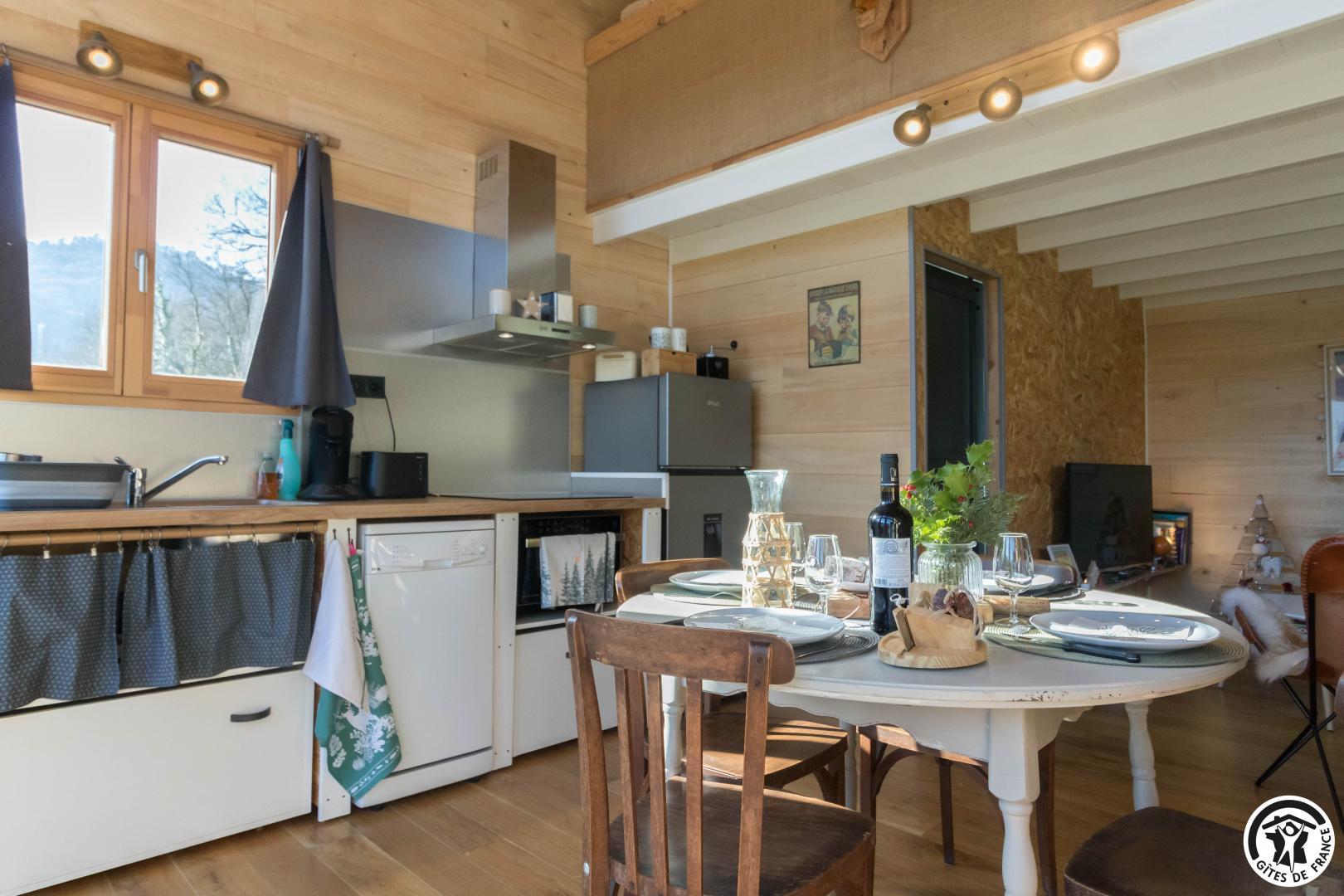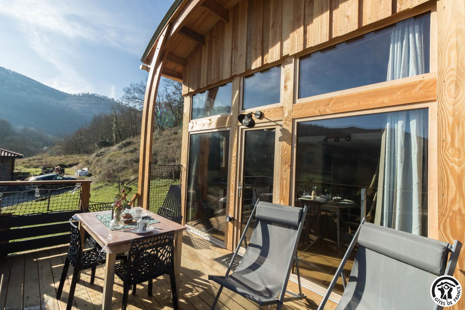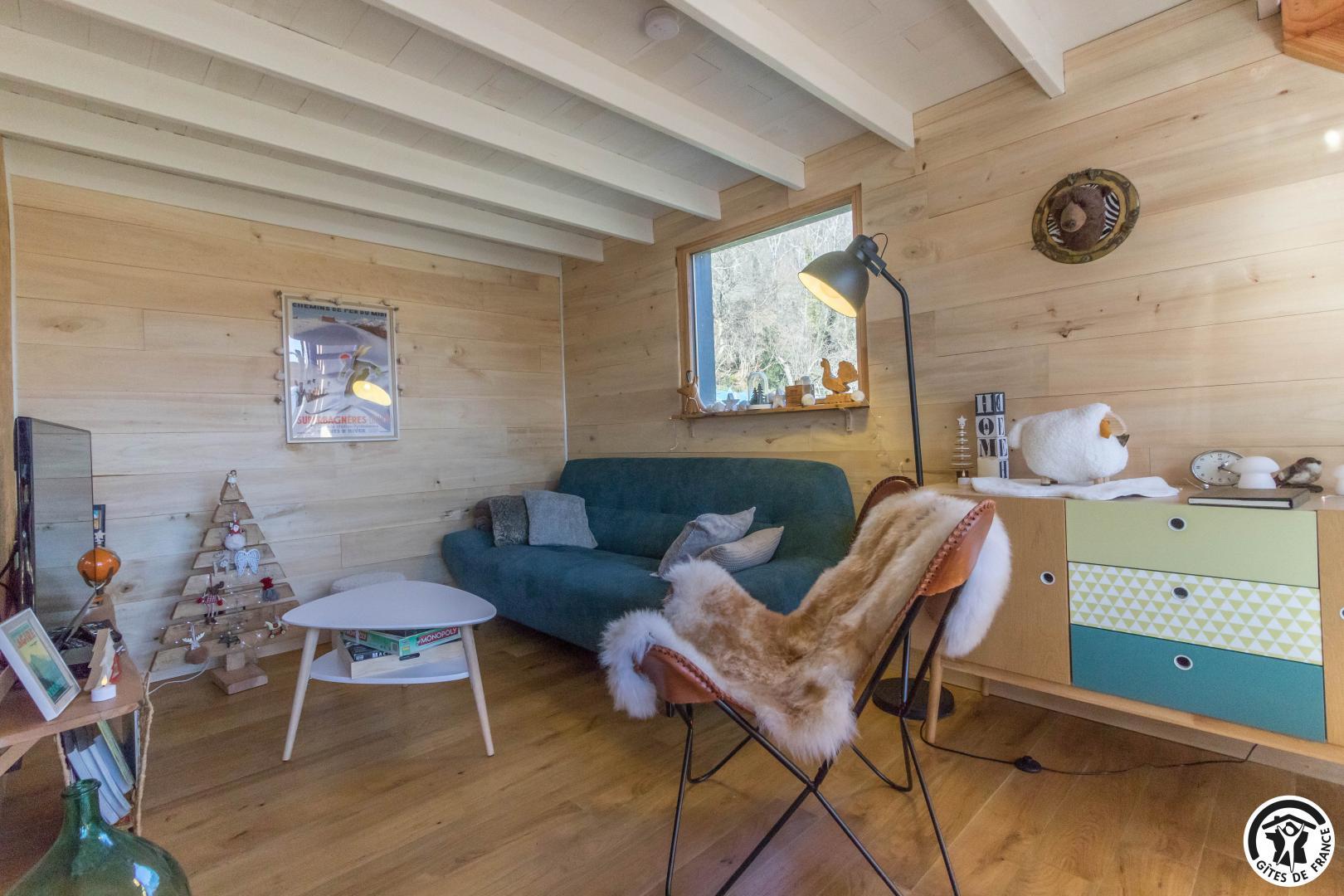 Treat yourself to a dream holiday in this charming, light-filled accommodation, located in the beautiful Pyrenean village of Sauveterre-de-Comminges. Karine and Jérôme, the owners, have created an enchanting cabin for your holidays. They’ve put their heart and soul into this accommodation and look forward to welcoming you! The completion of this project also highlights their eco-responsible approach, since the cabin comes from a supplier in the Dordogne, the wood for the fittings was bought locally, and the insulation is made from wood and plant wool.