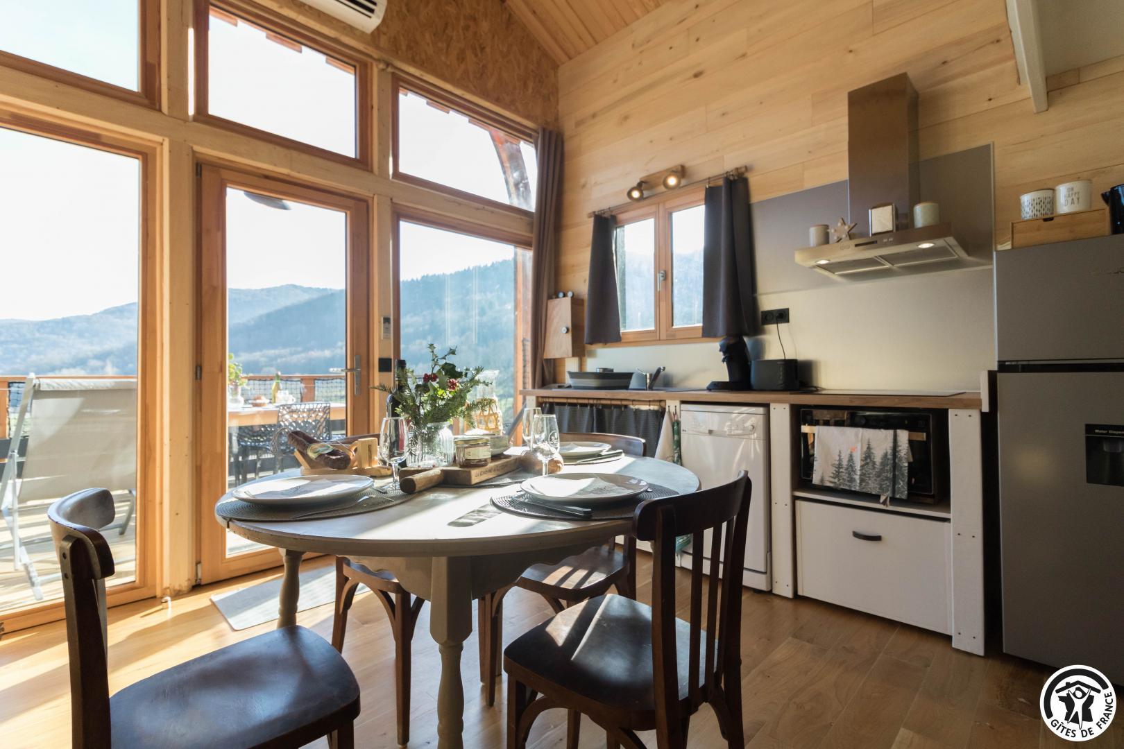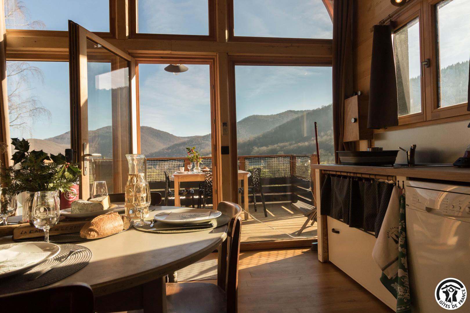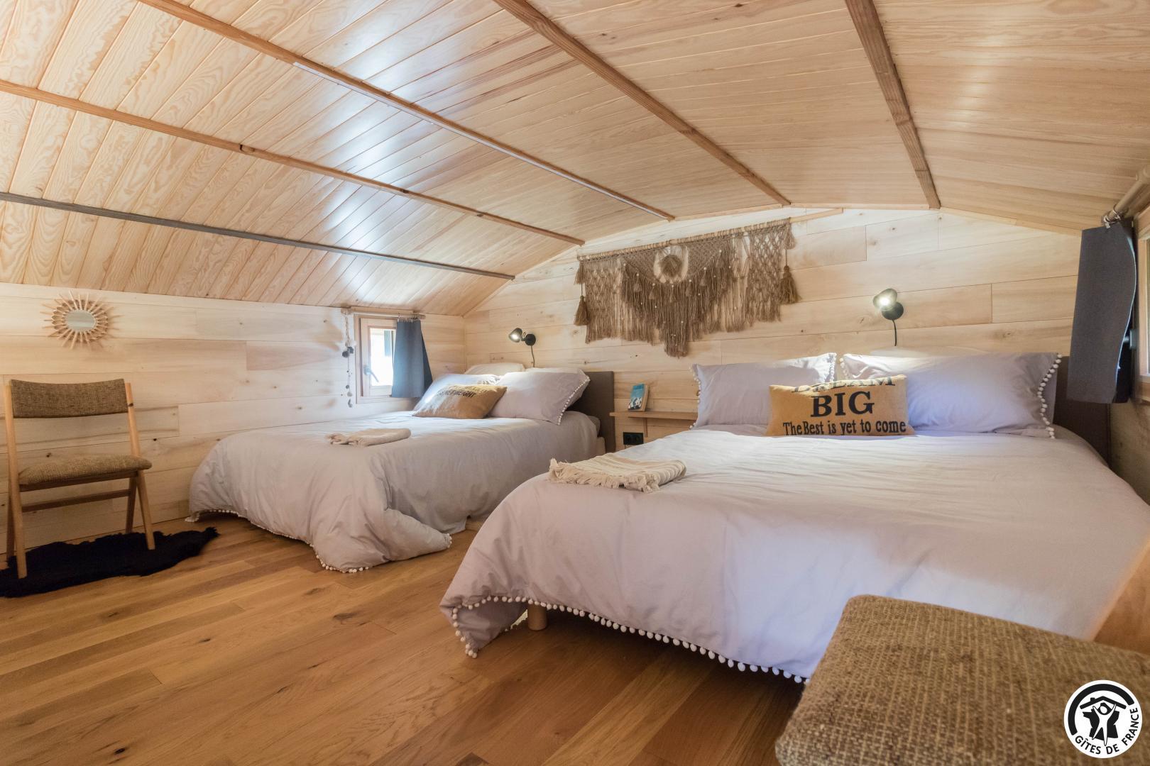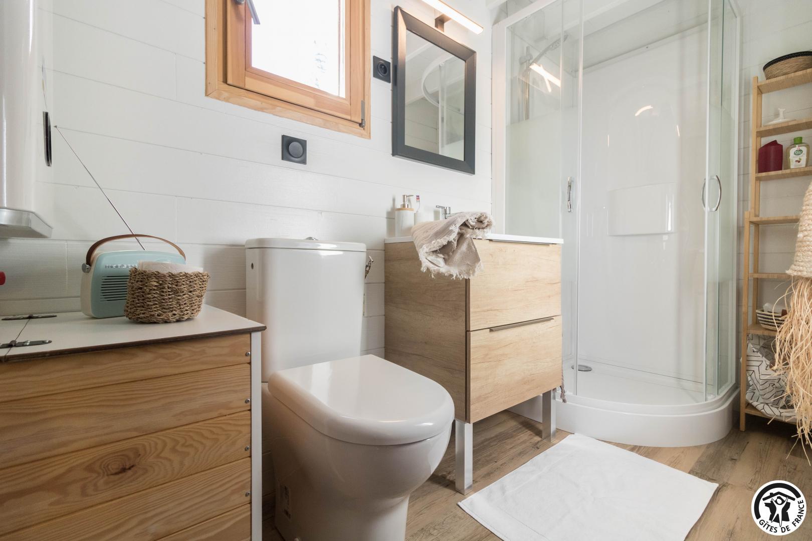 Treat yourself to a dream holiday in this charming, light-filled accommodation, located in the beautiful Pyrenean village of Sauveterre-de-Comminges. Karine and Jérôme, the owners, have created an enchanting cabin for your holidays. They’ve put their heart and soul into this accommodation and look forward to welcoming you! The completion of this project also highlights their eco-responsible approach, since the cabin comes from a supplier in the Dordogne, the wood for the fittings was bought locally, and the insulation is made from wood and plant wool.
