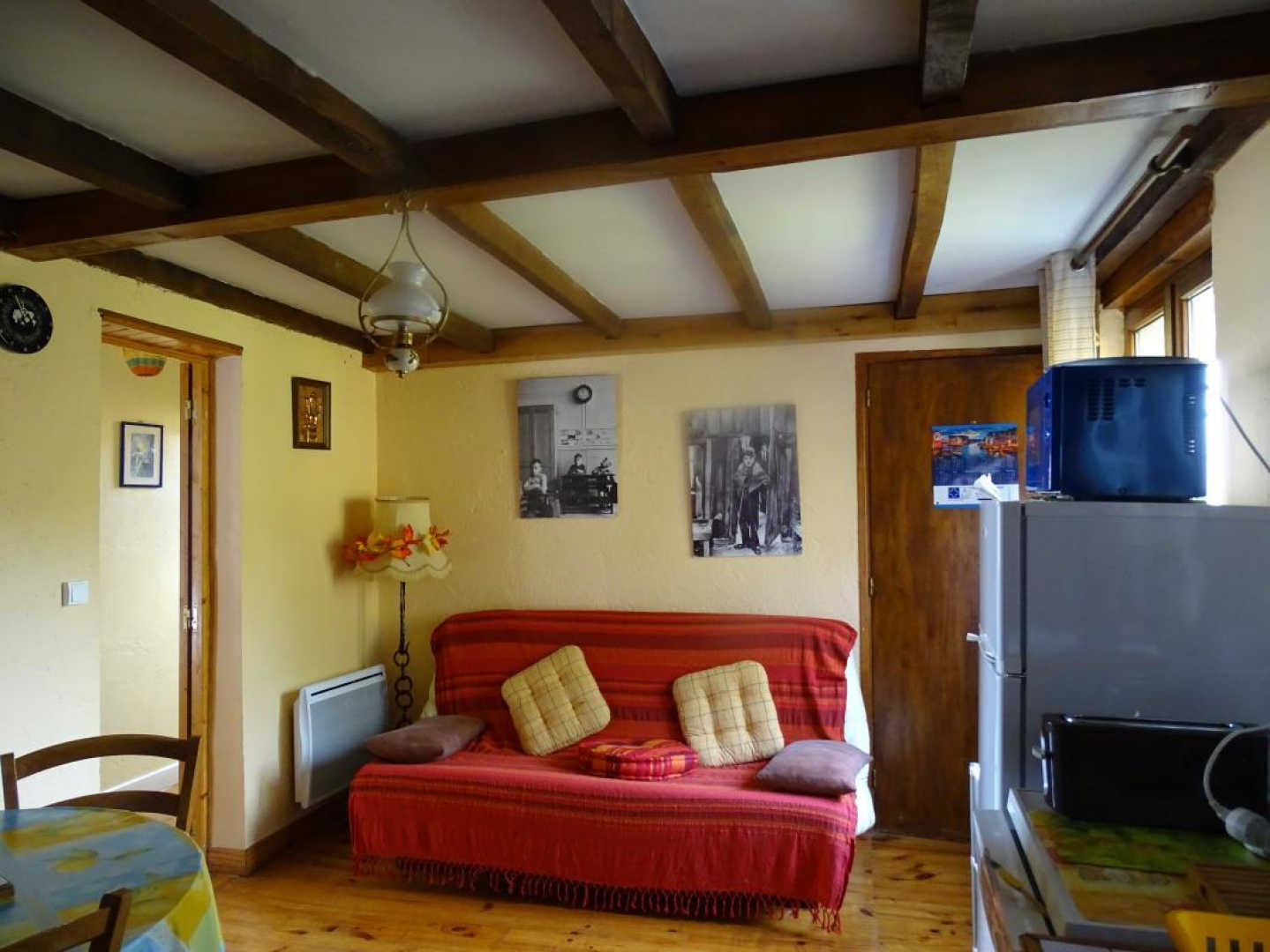 Petite terrasse couverte pour vos repas ou petits déjeuners dehors à l’ombre. Cuisine, deux chambres (un lit double en 140 dans chaque), salle de jeux enfants, salle de bains, wc. Equipement bébé. Chauffage électrique. Climatisation réversible.
